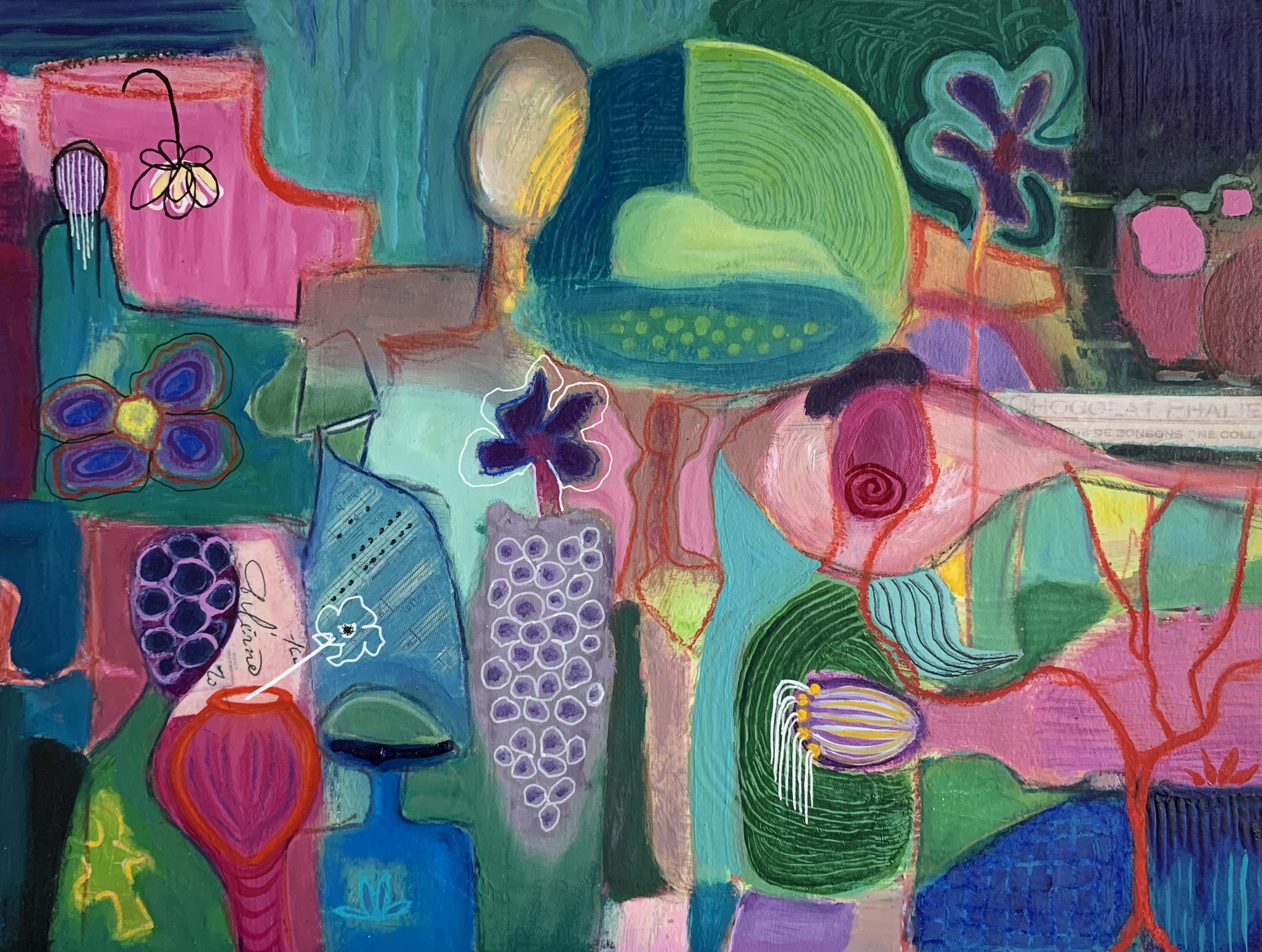 Is it Jazz No2 by Marijke Lambregtse is another fun playful mixed media artwork inspired by music, rhythm, lively talk and musical thoughts. An enthusiastic improvisational and colorful approach. She hopes it creates a feeling of optimism and happiness