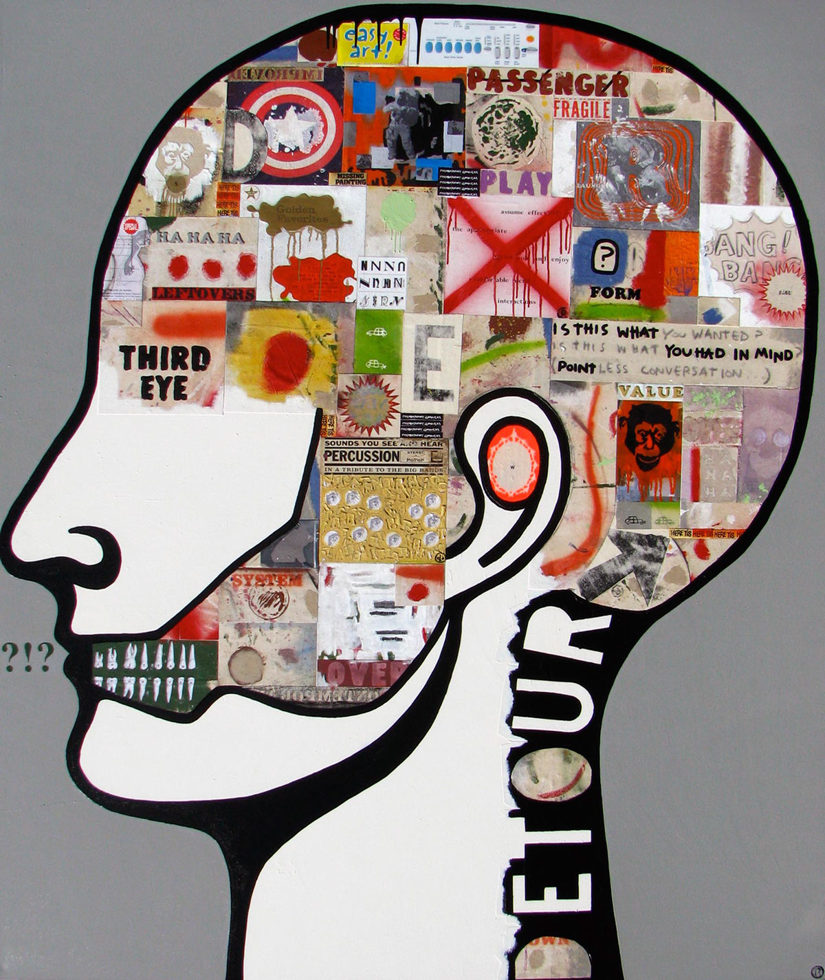 Acrylic spray enamel oil stick charcoal and collage on canvas