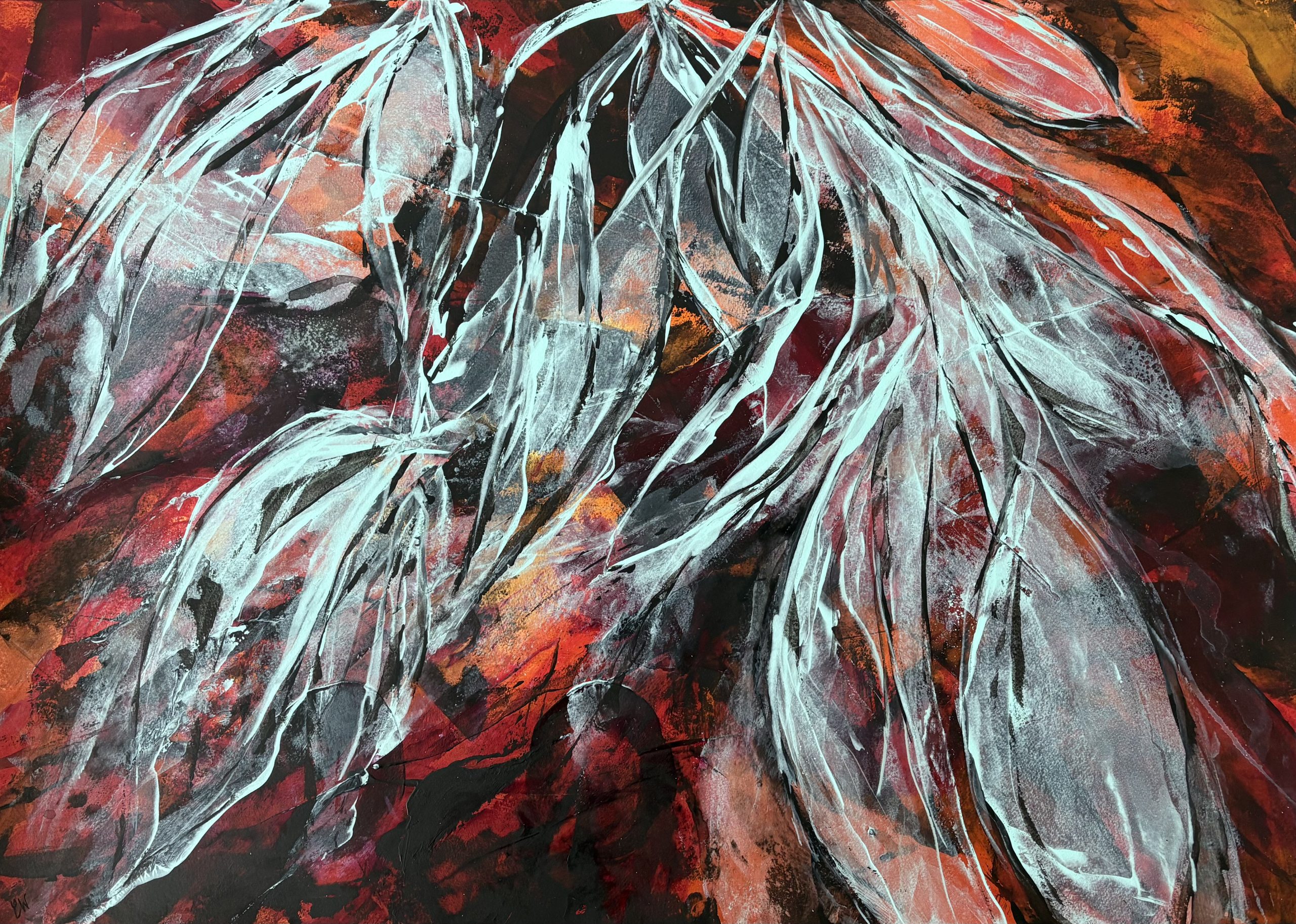 A beautiful abstract botanical painting. 59.4 x 84.1 cm (A1 size). Acrylic on paper. Frame not included. Requires framing.