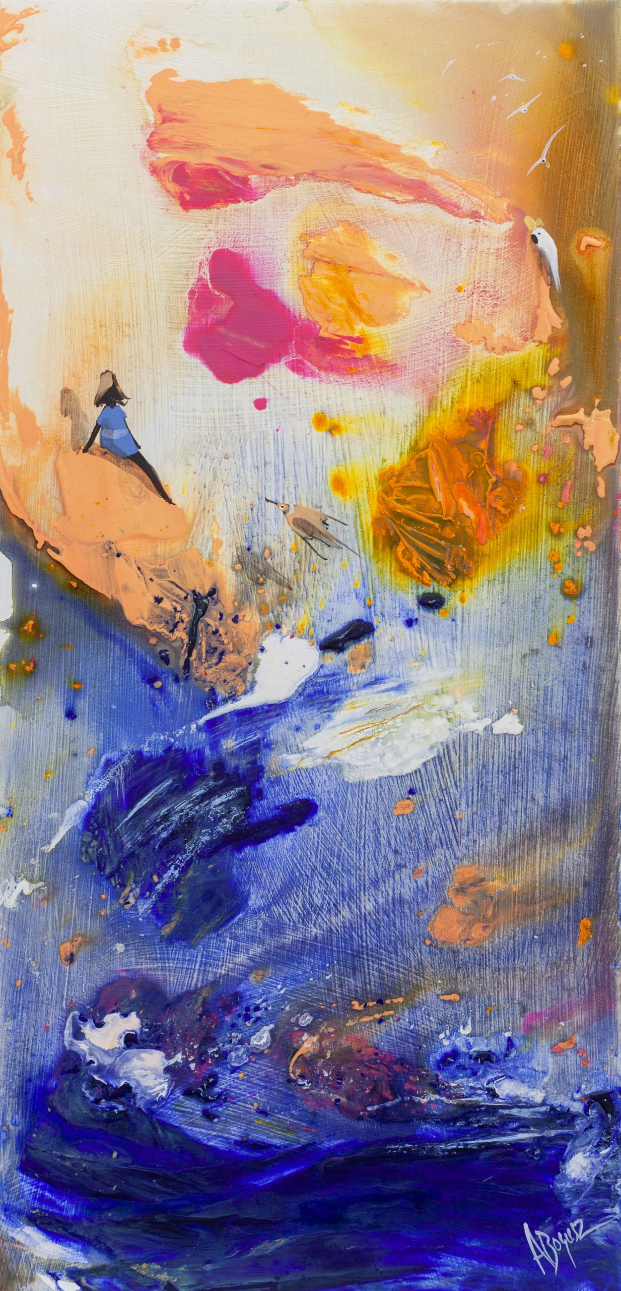 I like the viewer to weave their own story into my paintings, so I’m always hesitant to explain the meaning behind an artwork.