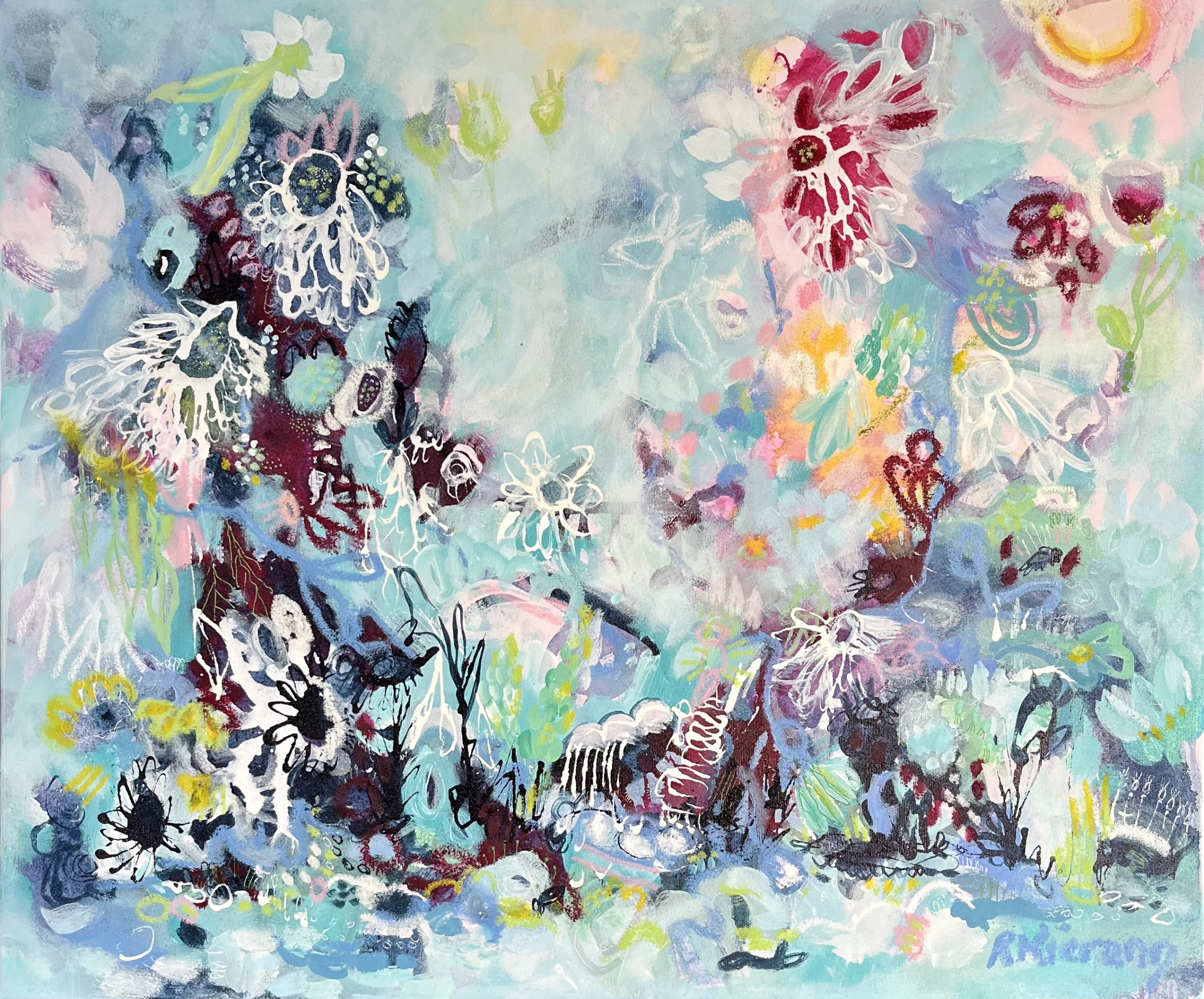 Full of light hearted & joyful fanciful paths. This painting brings harmony, peace and a little magic to any room.