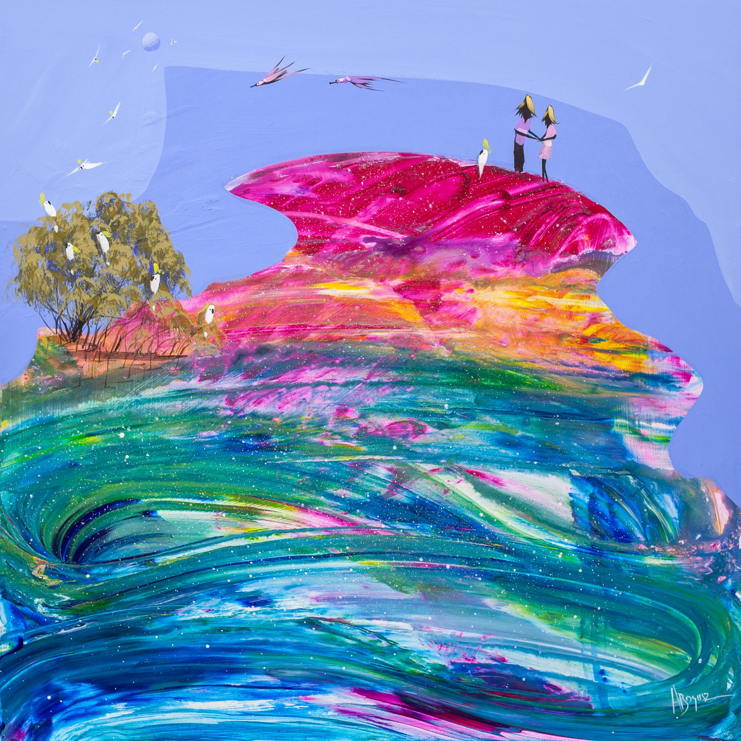 In creating this vivid tableau, I harnessed the swirling energy of life and companionship. With bold acrylic strokes, I’ve depicted an enigmatic landscape that pulses with movement—a riot of colours that dance across the surface, symbolizing the vibrancy and dynamism of human connections. This artwork is a testament to shared journeys and the beautiful complexities of coexistence, sure to infuse any space with its vivacious spirit and the profound depth of shared experiences.