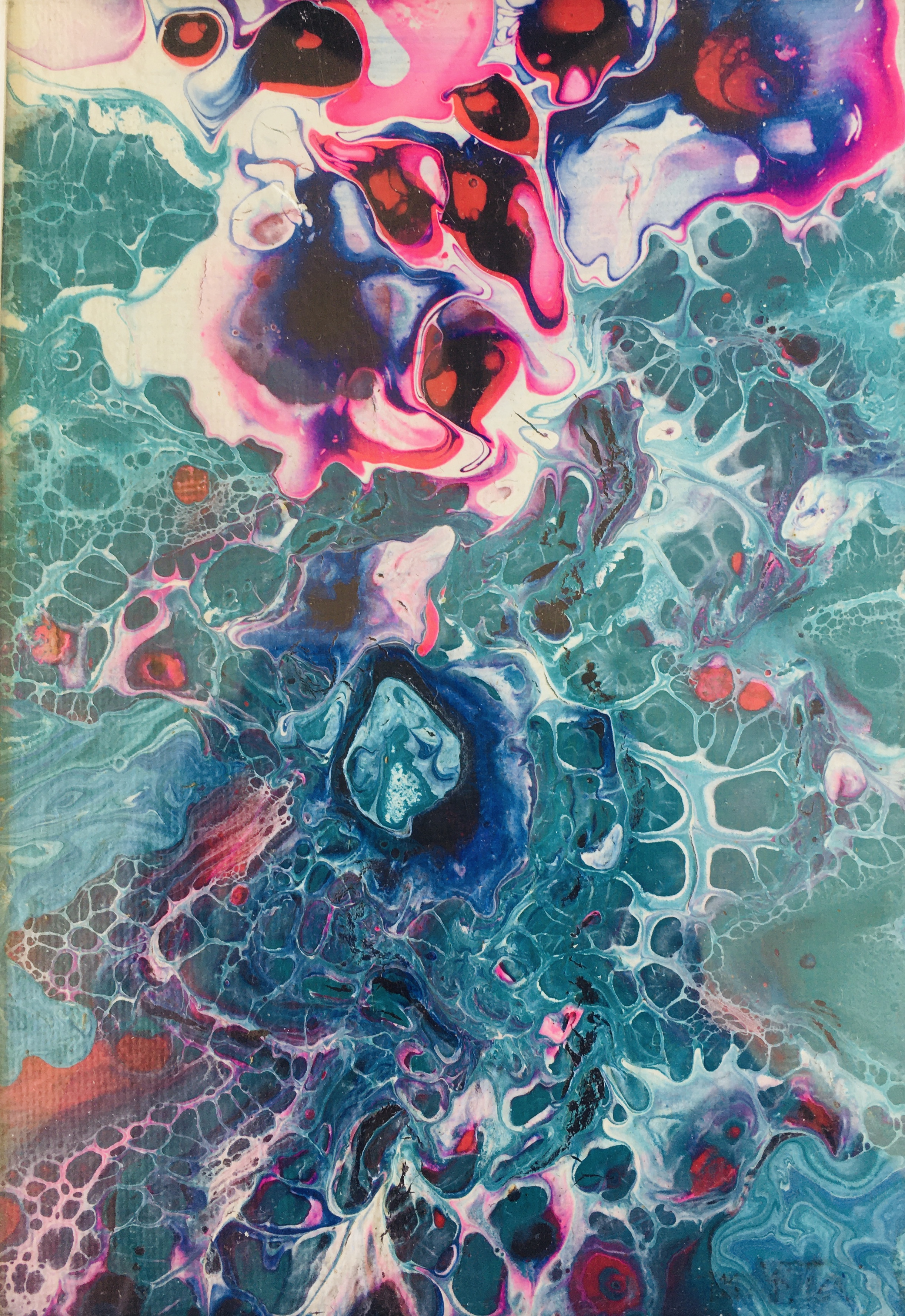 Fluid acrylic pour on 16cm by 22cm acrylic paper