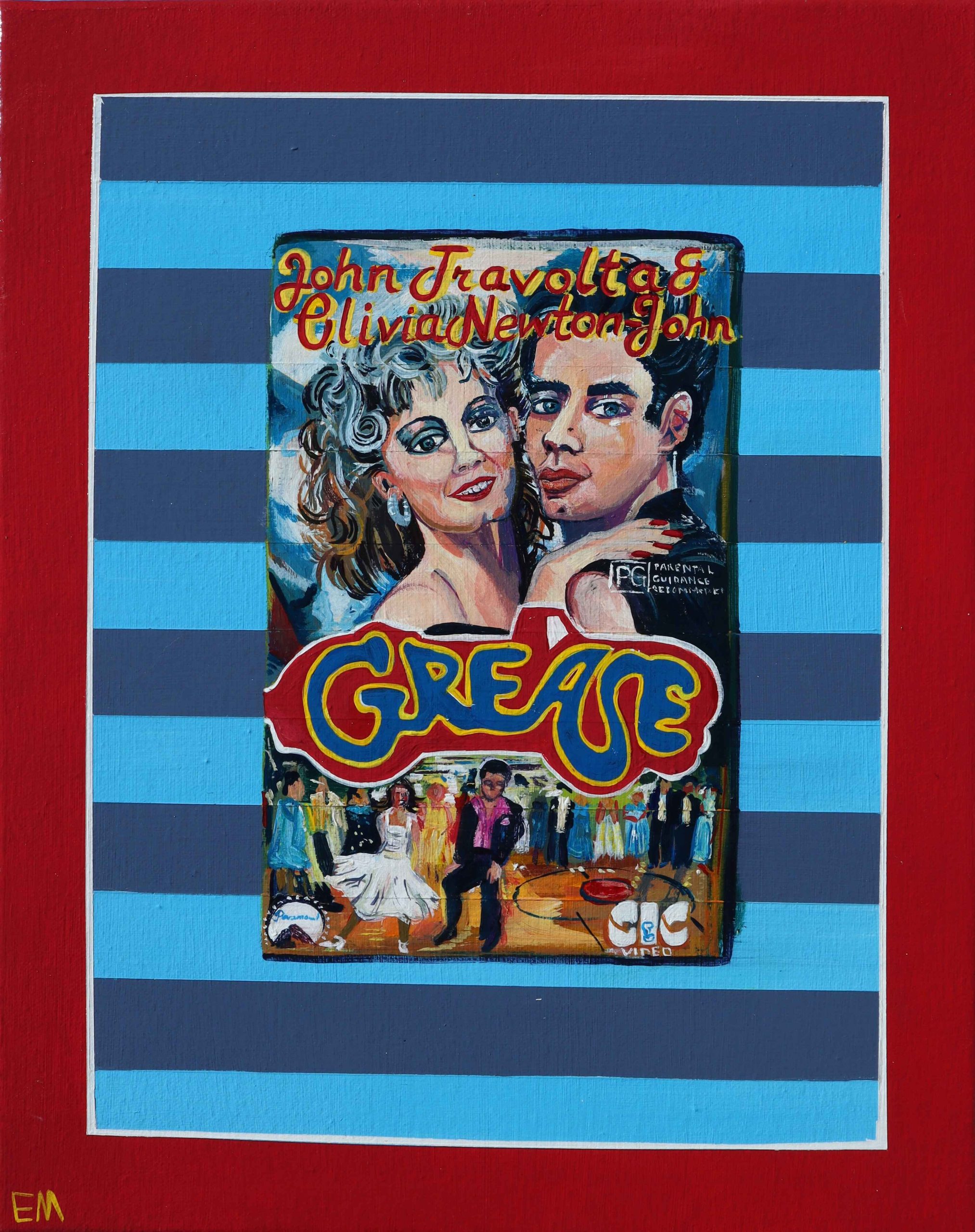 “Its Hyyyyydromatic” an aptly titled still life painting of a ‘vintage’ Grease Videotape.