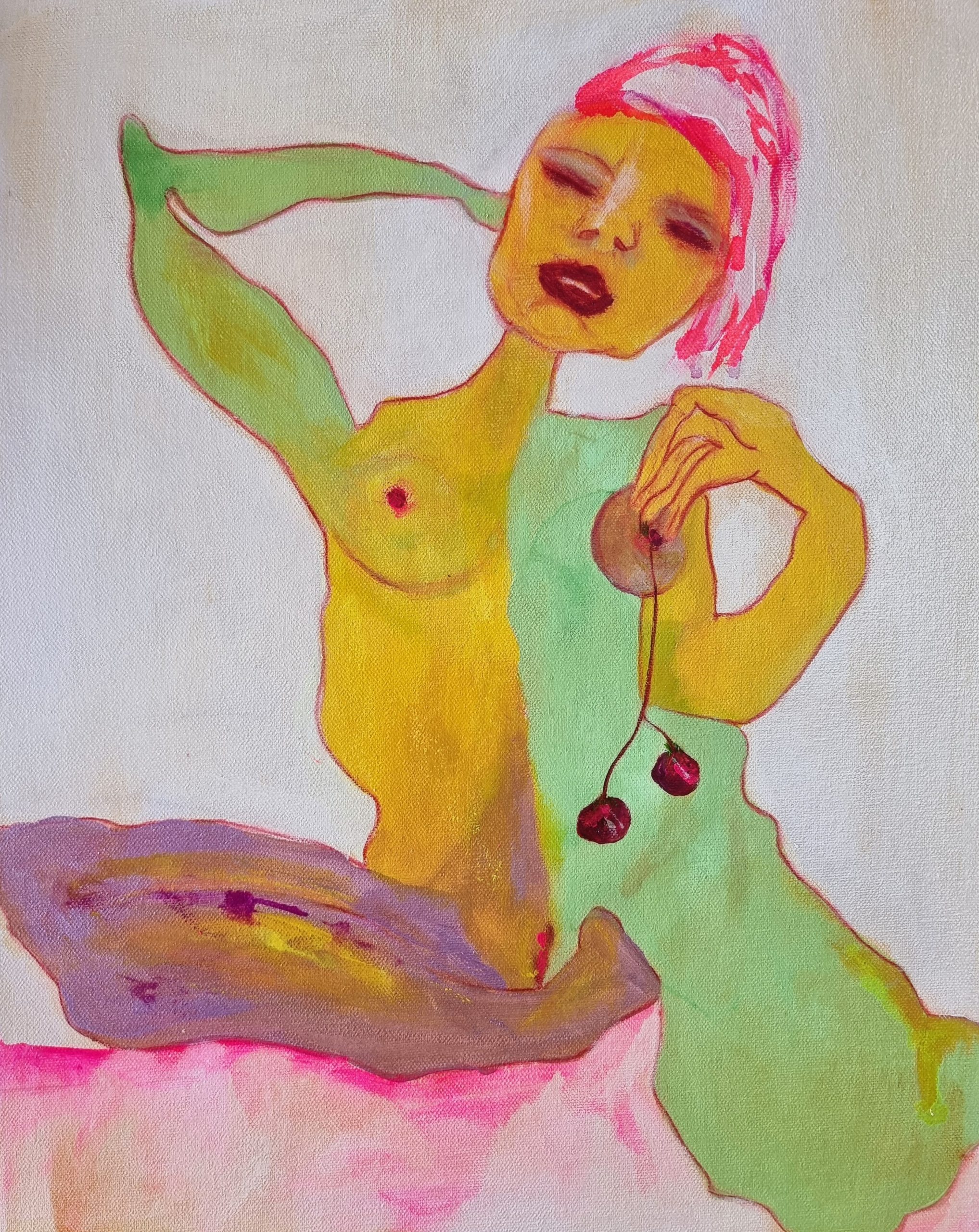 Bit of double entendre here- offering cherries, but also just an observed pose and nude study