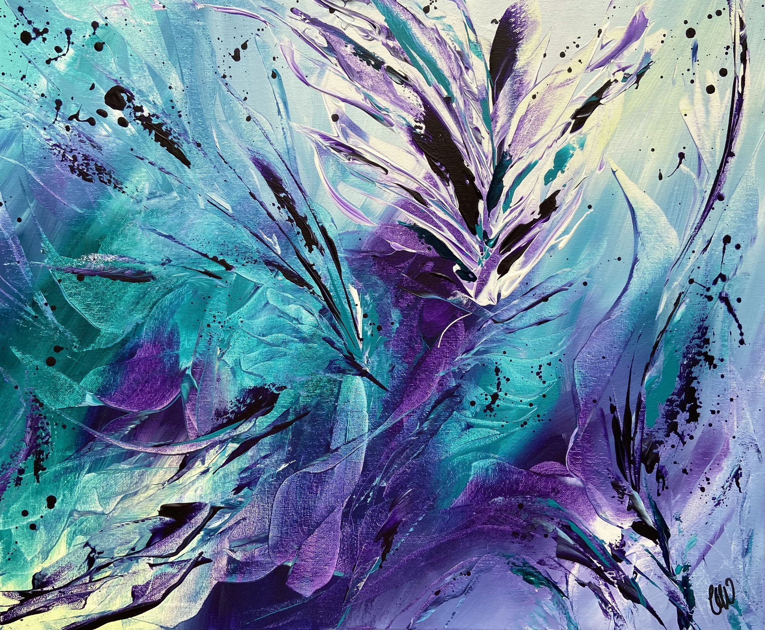 It’s Just The Beginning by Carrie Welsh is a beautiful abstract botanical piece that will be the focal point in any room. This painting has a tranquil feel and lots of intricate details. 60 x 50 cm. Acrylic on canvas, ready to hang. Some images show what this painting will look like framed. Frames not included.