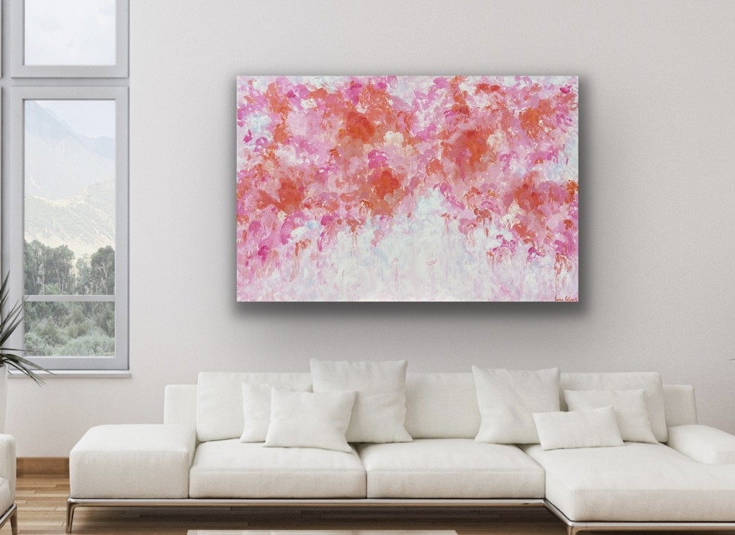 This artwork highlights the fresh floral tones of Spring and Summer. The calm weather and beautiful flowers always add a sense of joy to any day. A vibrant painting with lots of colour and depth. A great addition to brighten any space.