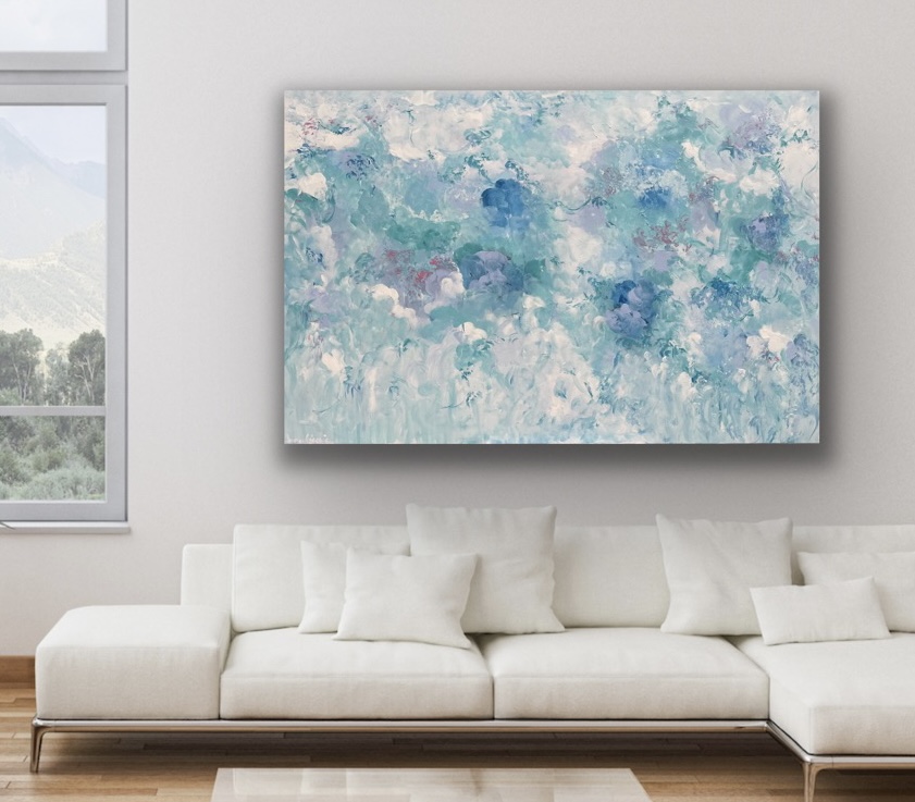 The latest addition to my ‘It’s love’ series is all about creating a sense of calm through soft shades of blue and greens. A touch of lilac adds a little bit light throughout. A lovely fresh and calm addition to any space.