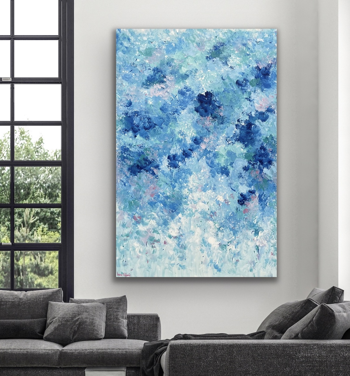 Vibrant crystal blue tones highlight how fresh and calm this artwork feels. The latest addition to my ‘It’s love’ series adds a light and joy to any space.