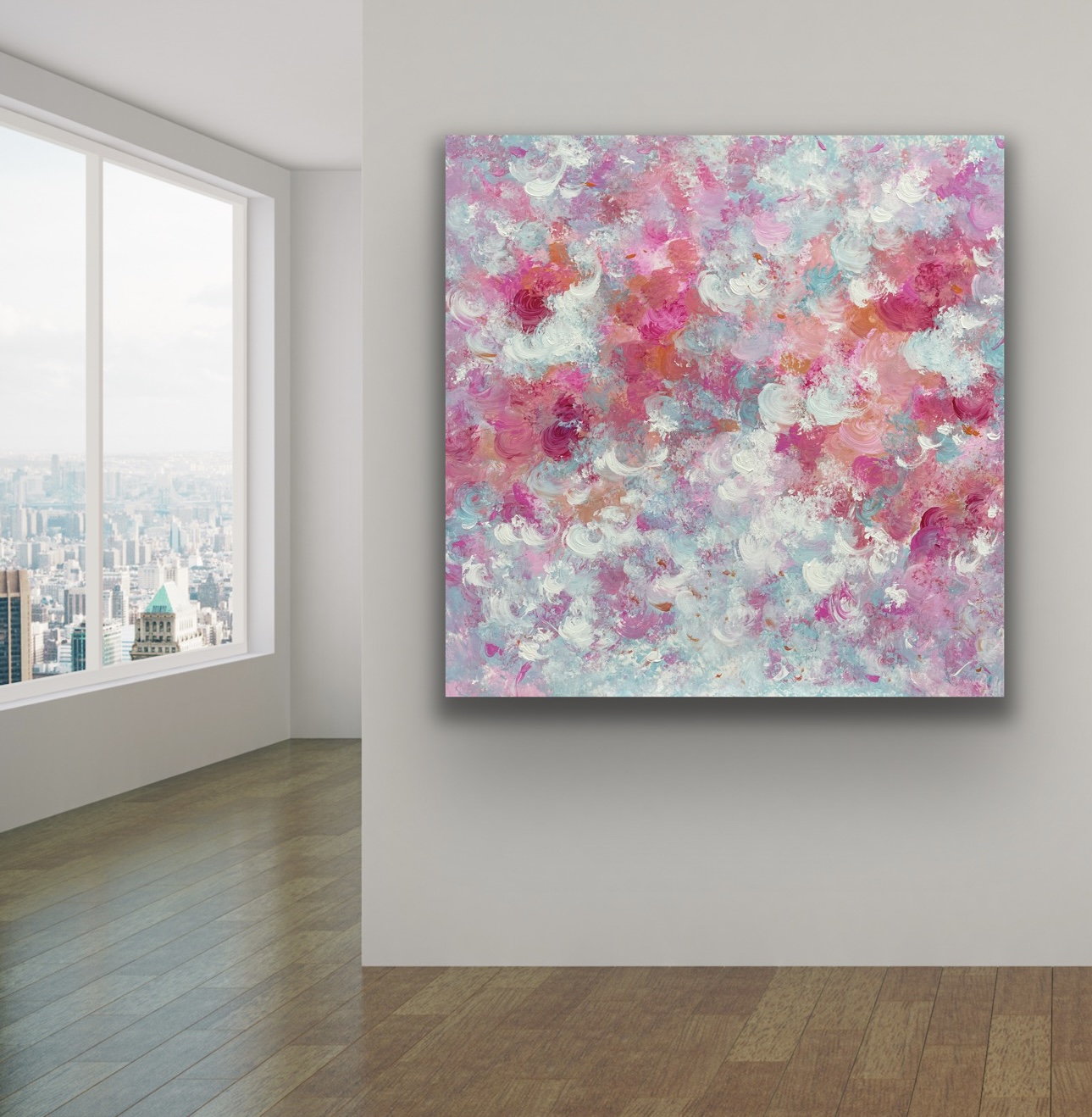 A pop of light and colour to any space. Pastel blues and pinks create a vibrant and positive feel. A touch of white throughout adds a soft touch. A great addition to any space.