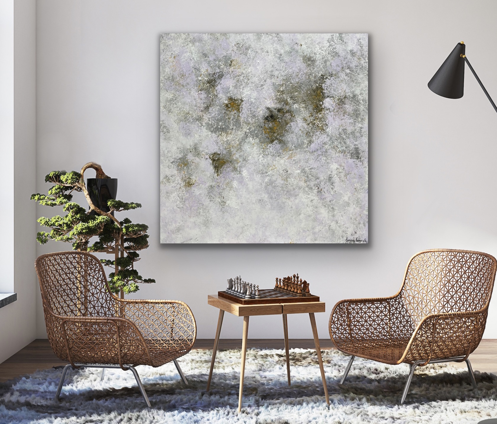 This is the 5th artwork in my new series ‘It’s love’. It features soft shades of grey, brown and lilac to create a soft and neutral piece. A great feature in any room.