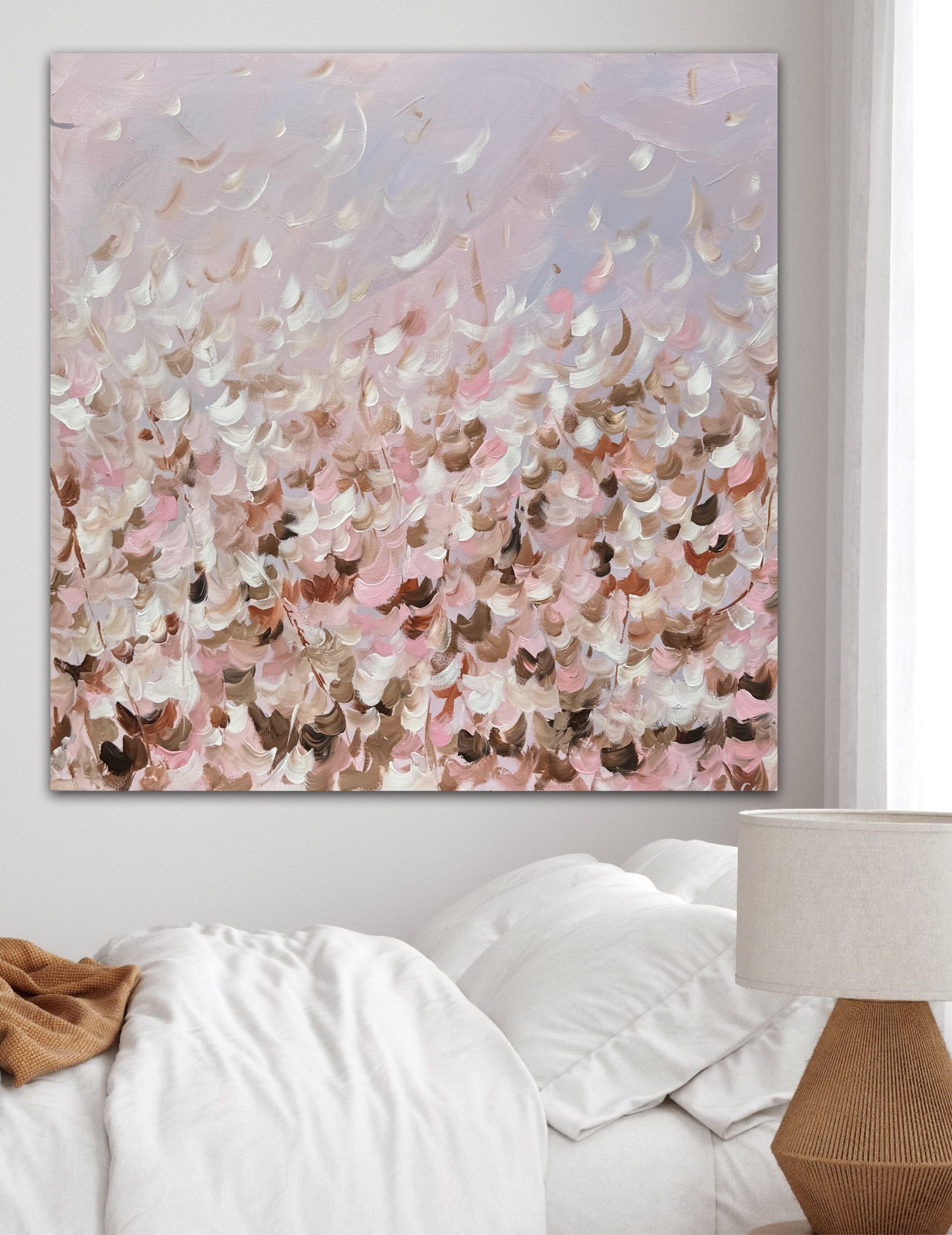 A soft abstract painting that seamlessly intertwines the delicate beauty of floral petals with contemporary art. The canvas comes alive with neutral hues, carefully selected to create a sense of calm and balance.