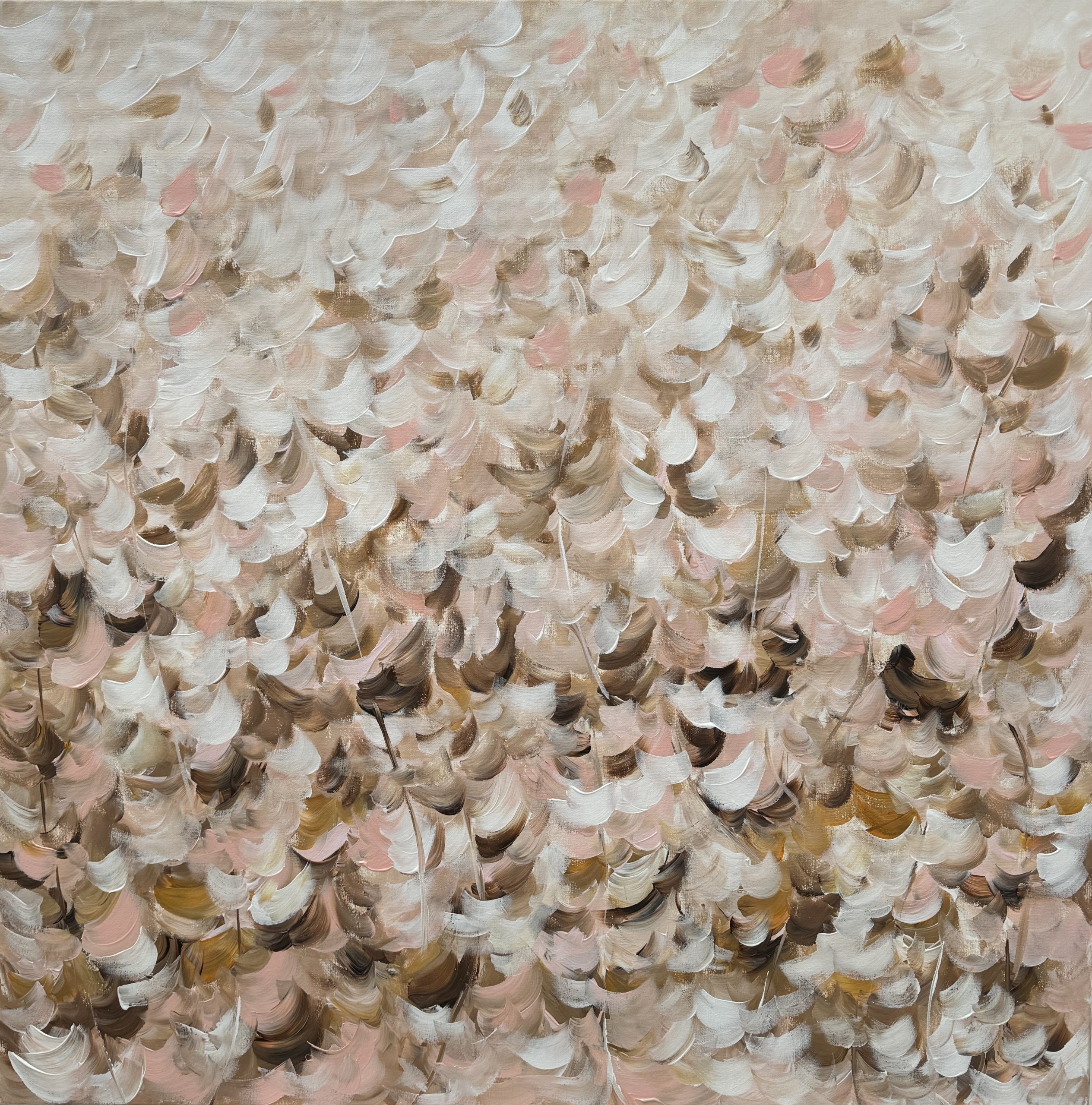 This artwork exudes a gentle and soothing ambiance with its soft, dusty pinks and muted beige tones. The canvas is sprinkled with delicate tiny flower petals, creating a harmonious blend of these soft hues and inviting a feeling of calm and tranquility.