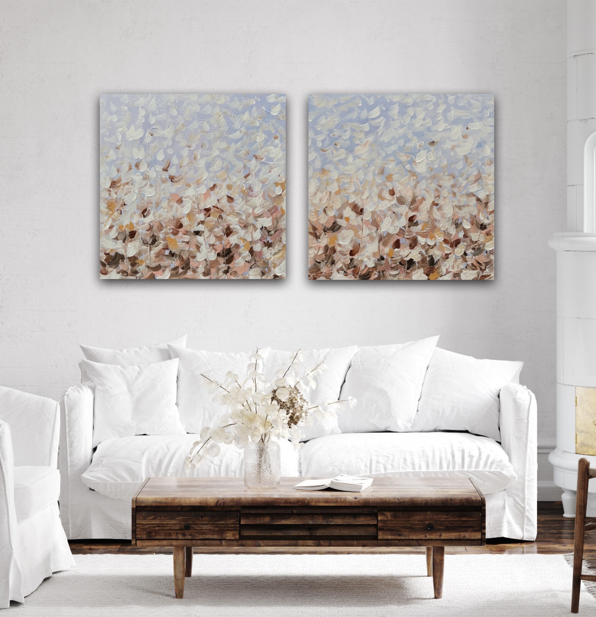This is a set of two paintings that can be hung side by side together or separate. Size of each artwork is 60x60cm.