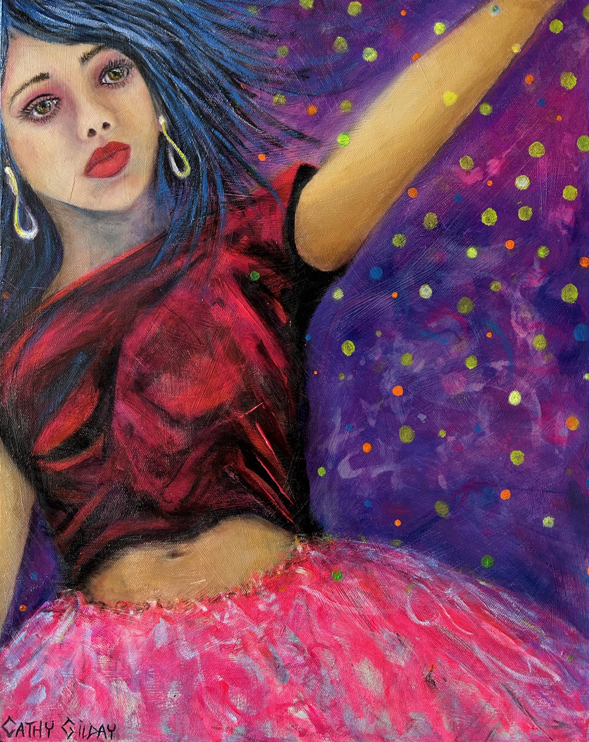 I’ve had this reference in my ‘Paintings to do,’ list for ages. The original image was actually of a guy outdoors, in this pose, but once I started sketching it out, I decided a girl in party mode, was more what I was looking for. So, like many creative beginnings, this one took on it’s own journey. So much fun to paint, with lots of texture and glazed layers. Because she has a slightly melancholy facial expression, ‘It’s my party,’ seemed like the perfect title.