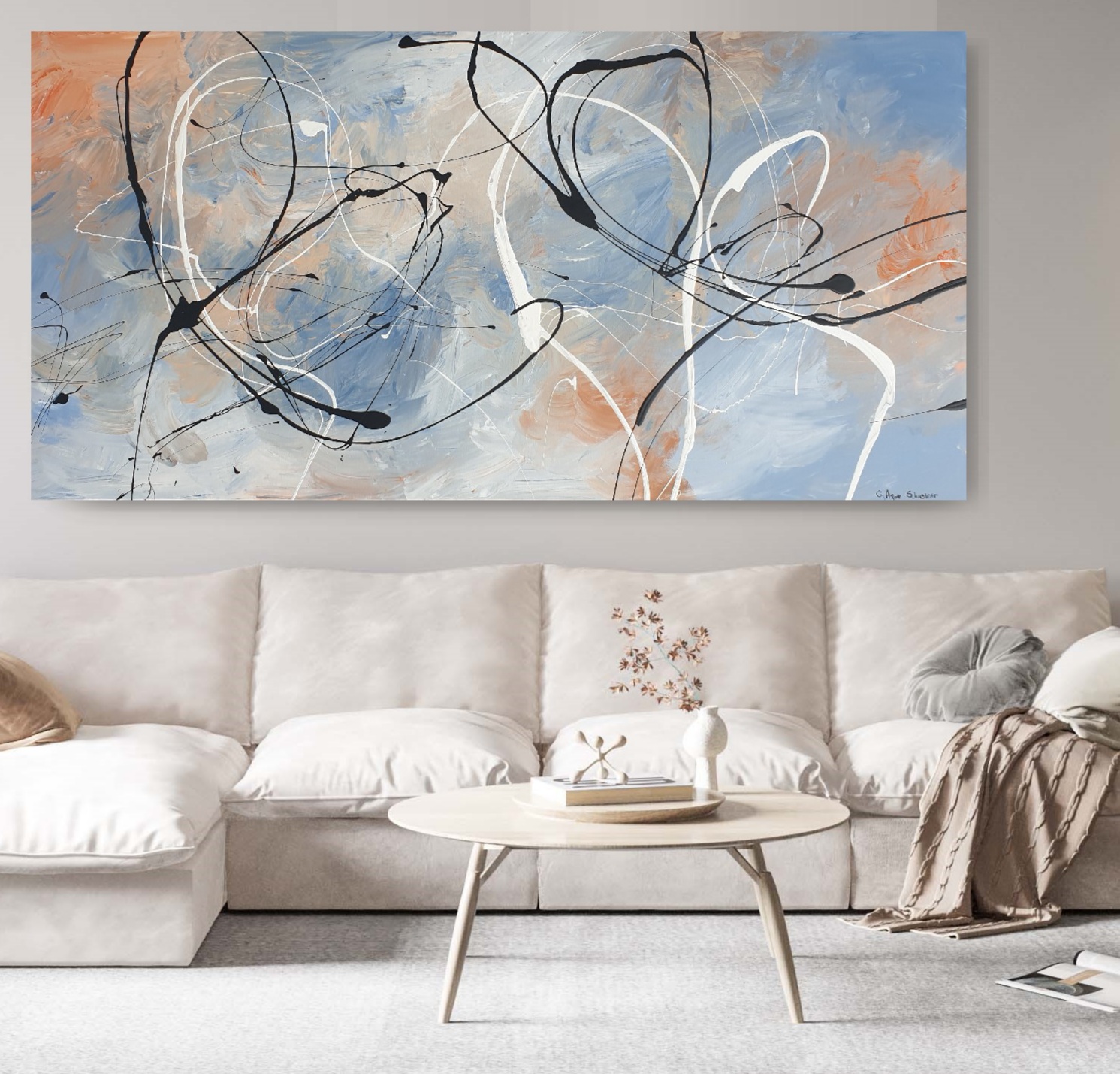 I view painting as sheer passion and feeling. Through my process I don’t seek to depict a set idea or subject, but instead I let scenes and dynamic movement emerge organically.