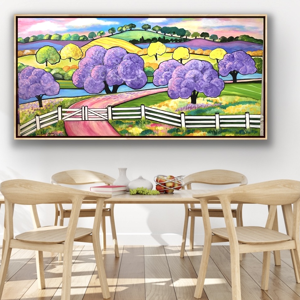 Inspired by the jacarandas and white fences at the entrance to a farm stay in the beautiful countryside outside of Brisbane.