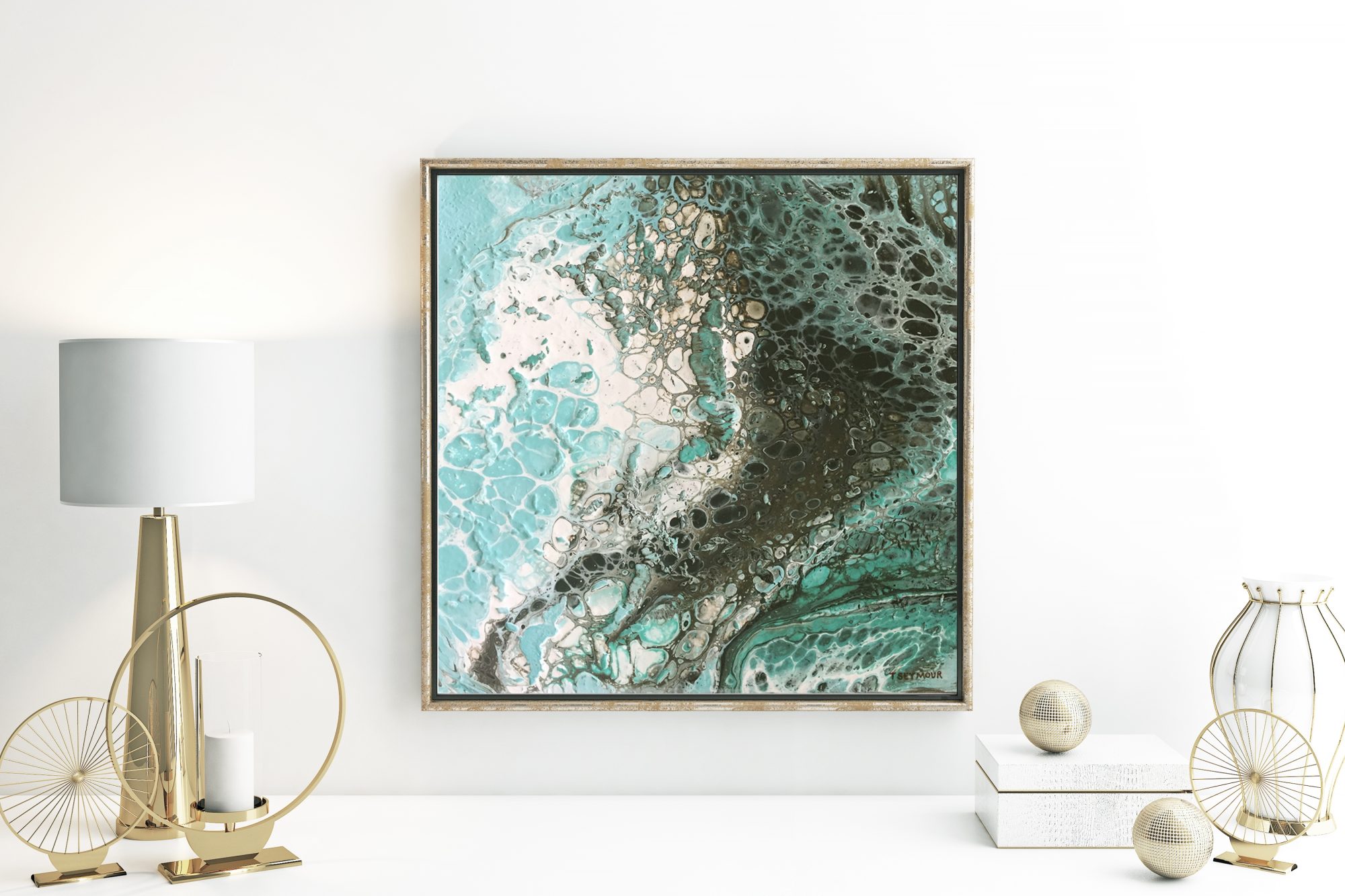 Quality acrylics used giving long lasting rich pigmentation/lustre. Designed on acid free environmentally unbleached cotton duck, triple coated with universal primer and gallery style folded corners. Protective Matte Varnish applied to protect work. The surface of the painting has a slight textured surface encouraging the viewer to touch and feel the art.