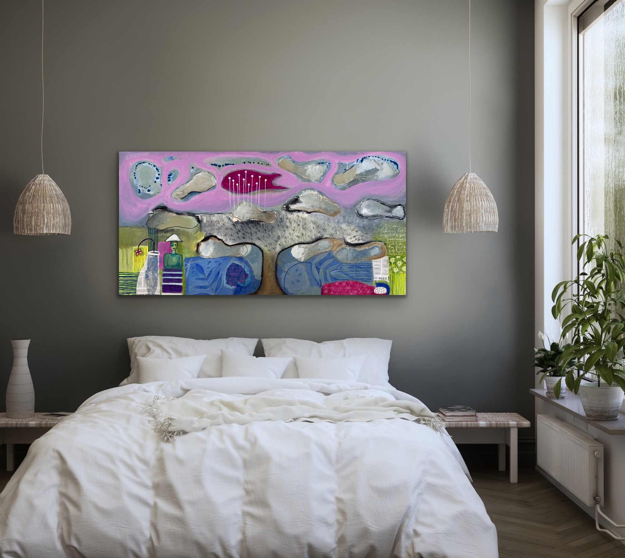 Although it was nice to stay in Kelabang Moding we were confronted daily with the inability to cope with the waste. It’s really really bad apparently education hasn’t helped that much with the litter we see every day in the ricefields and plastic still gets burned on the side of the roads. There is a recycling plant in Denpasar which has been closed because of the air pollution it caused!! So it did give me a mental and physical headache which actually made me want to paint even more. I painted quite a few works which made me feel positive and hopeful as usual which I hope reflects in this work. I gave the painting a soft, colorful and positive feel by using gorgeous expressive colors as Bali is still an amazingly beautiful, fertile place with a strong culture which has survived despite everything going on in the world. Plus it gives the viewer food for thought and discussion.
