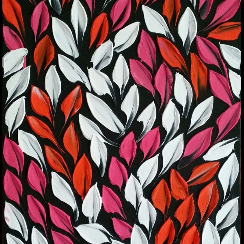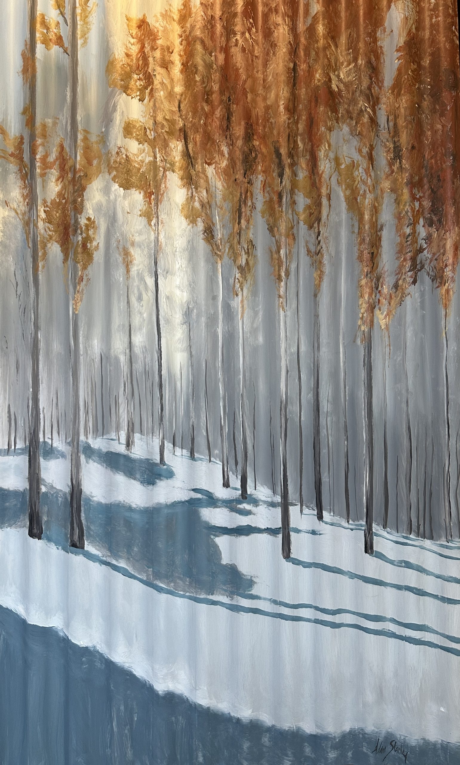 Japan Alps in autumn by Adam Stanley – in this painting I have created a 3D depth in the trees using the corrugations vertically.
