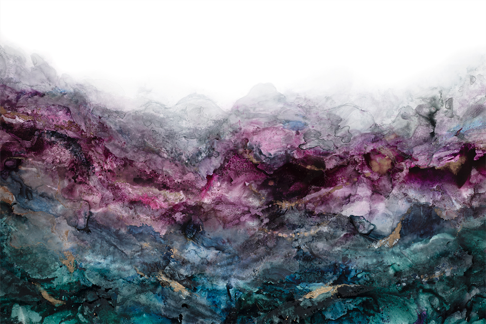 Jewel tones of emerald, greens, pinks, purples, blues and golds adorn this original mixed media artwork on synthetic paper. Inspired by mountains and valleys, this painting is unframed and does require framing to be hung, it will arrive rolled in a mailing tube ready to take to your local framer!