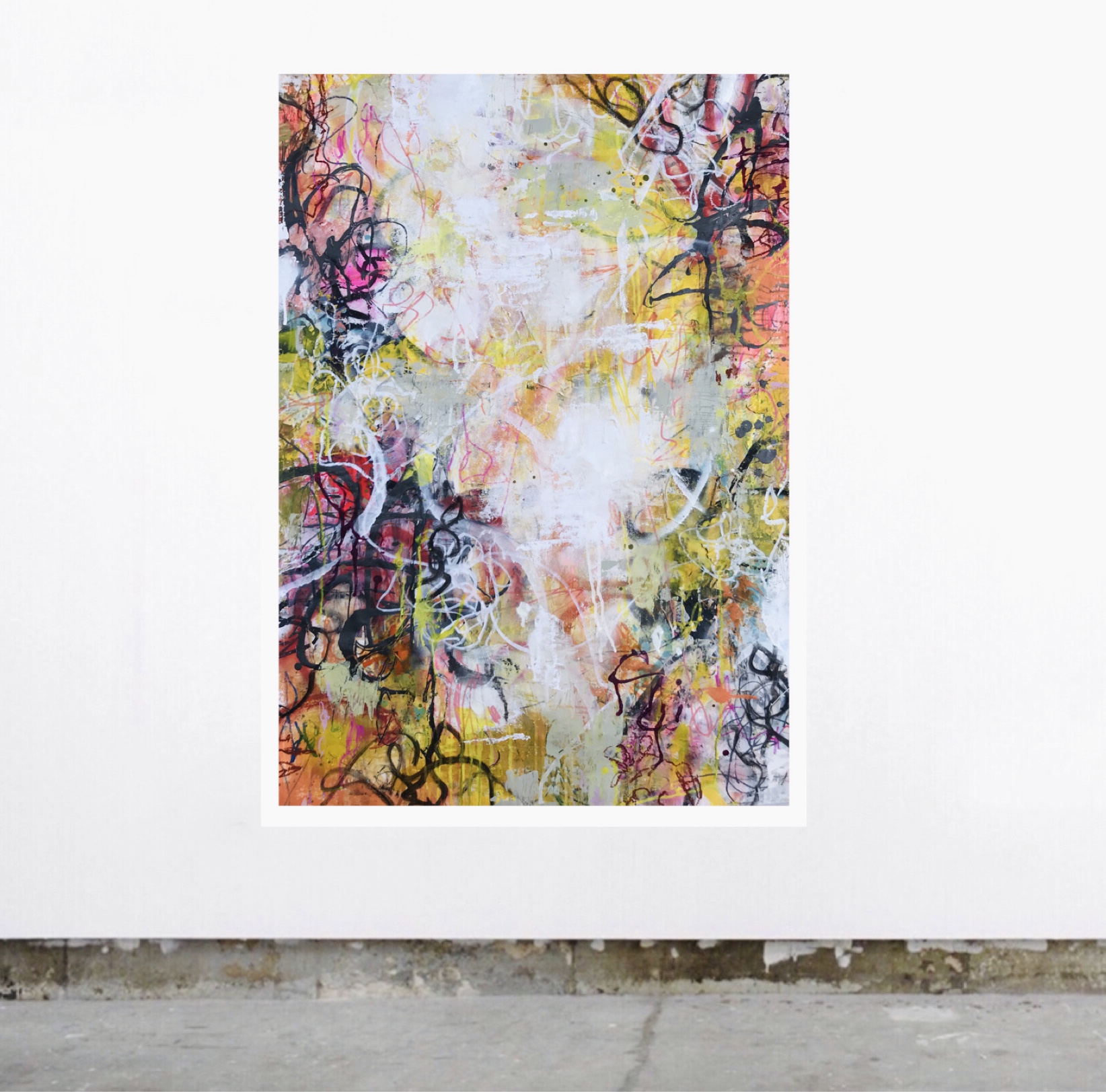 This artwork has a very textured finish created by built up layers, a visual effect mimicking the look you would see in the street where this effect is created over time on Graffiti Walls & Advertising Spaces. These imperfections are part of the overall look and feel of the finished work.