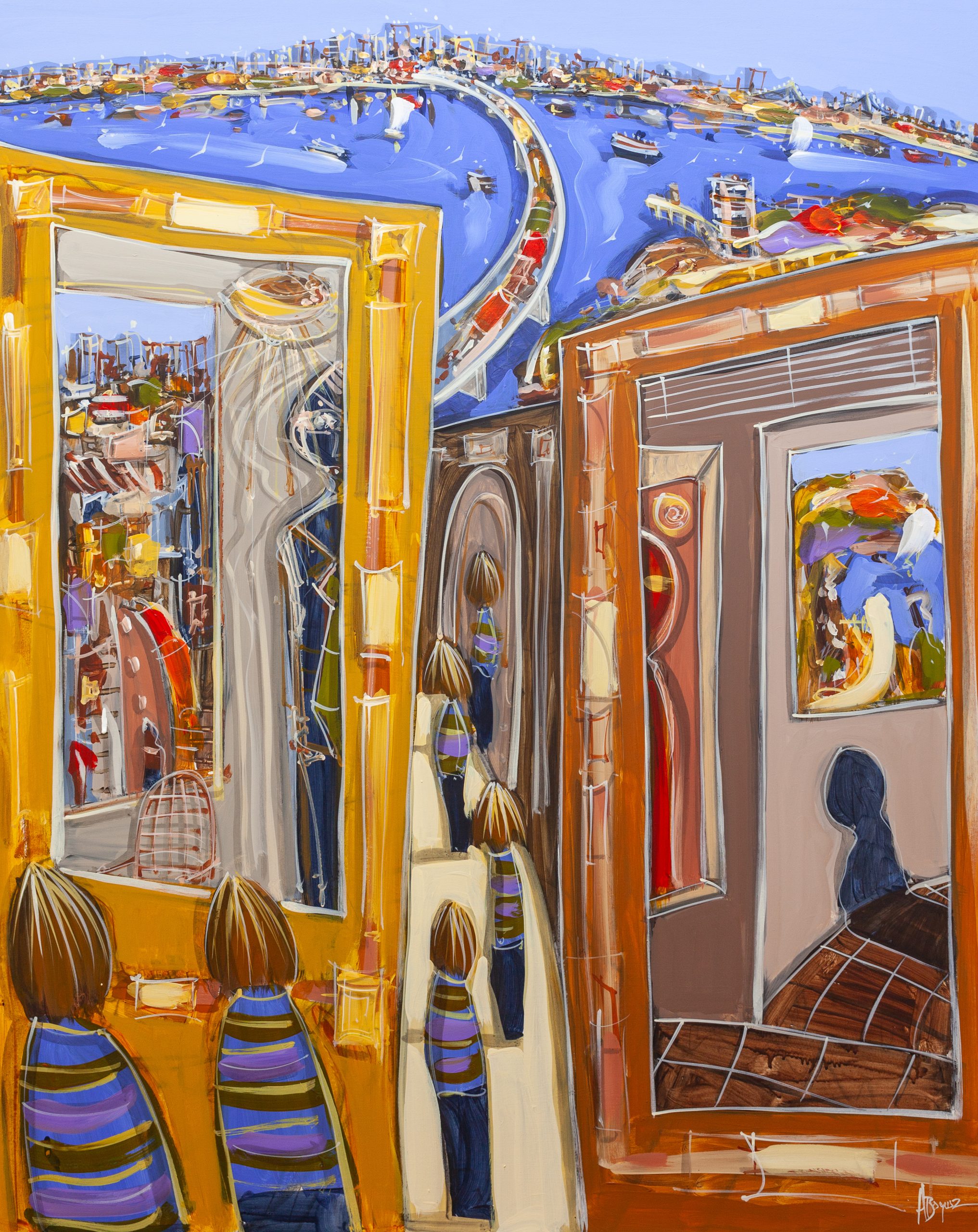 This artwork is a culmination of almost 25 years of painting. It draws inspiration from many sources, including my time growing up in Townsville, my current hometown of Brisbane and my wife and two children. These images do not represent any particular place or time. I want them to have a universal appeal.