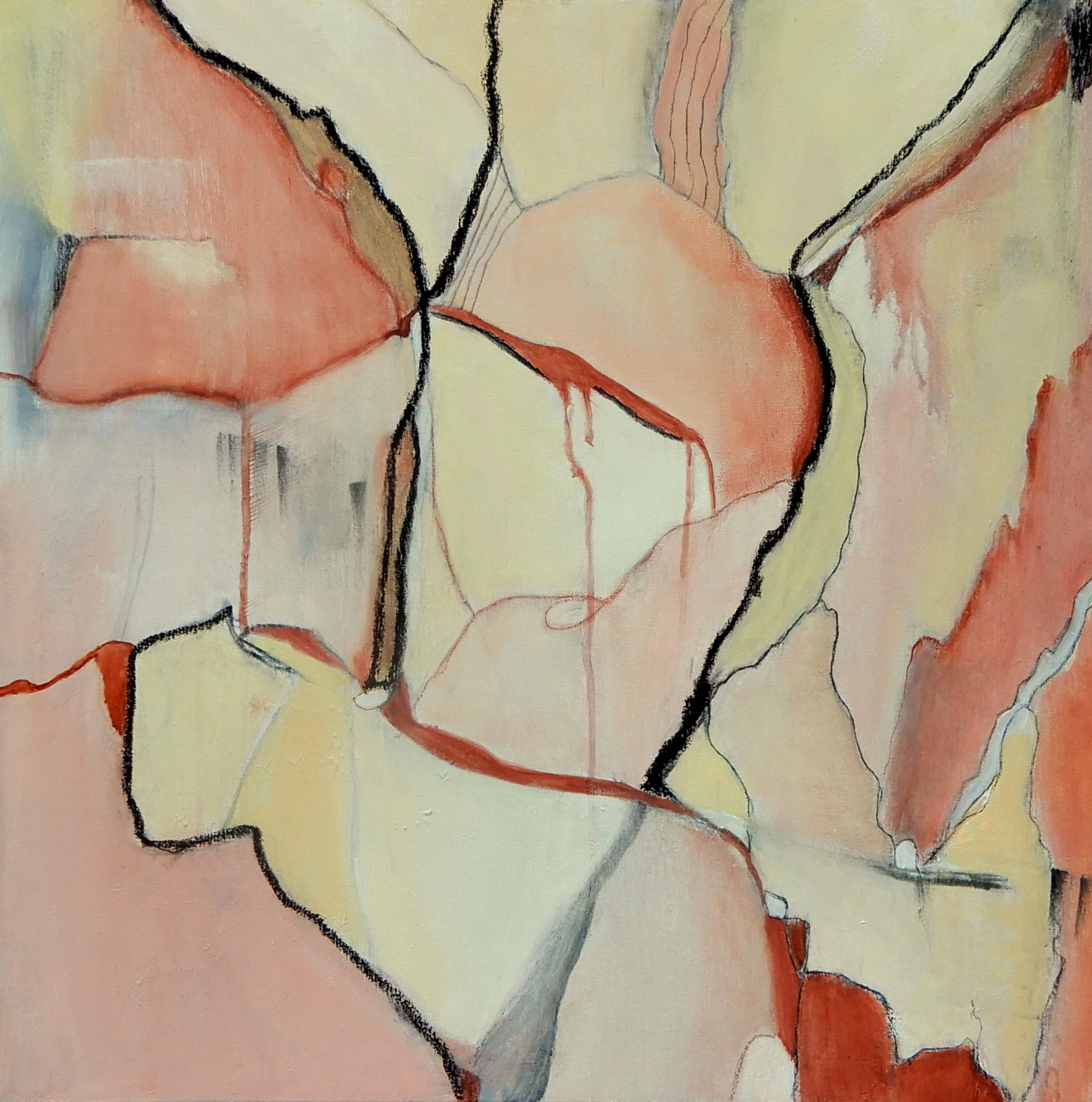 Just Peachy is inspired by nature and its warm subtle tones of pink, peach, cream, ochre and touches of black make this calming piece work well in most spaces.