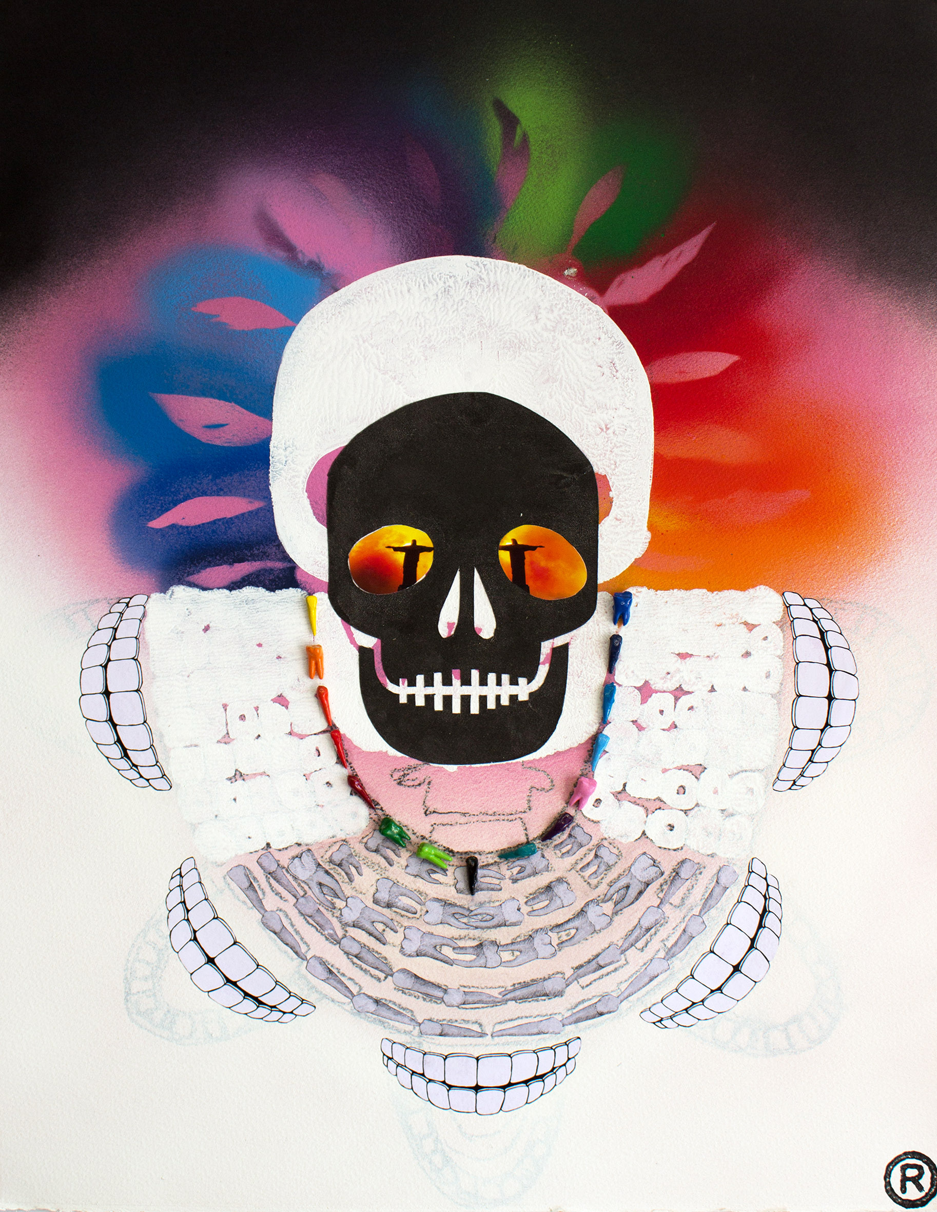 Acrylic, spray enamel and collage on 356gsm Waterford rough paper