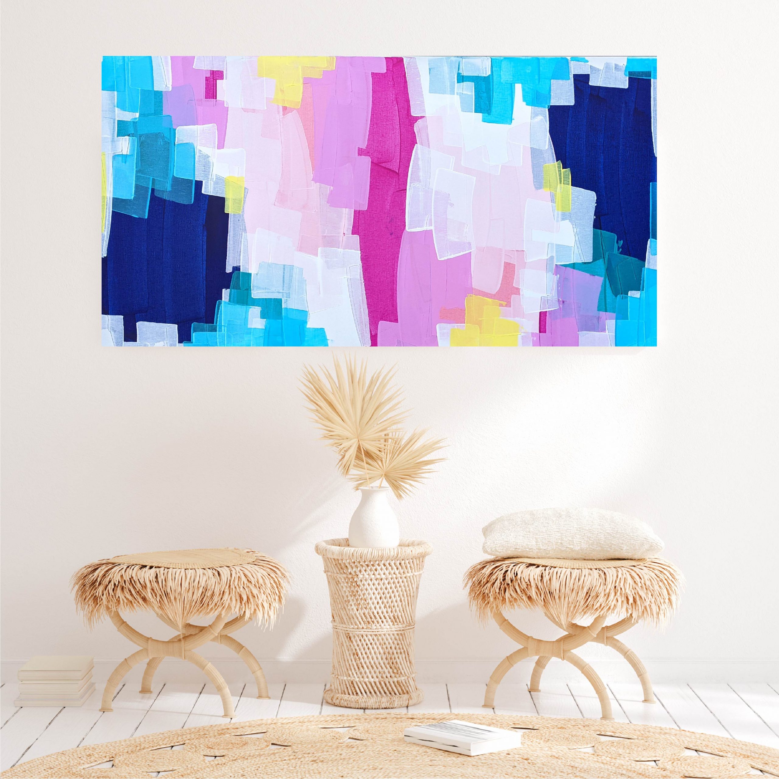 Artwork sides are painted white, with a wire across the back ready to hang on the wall.