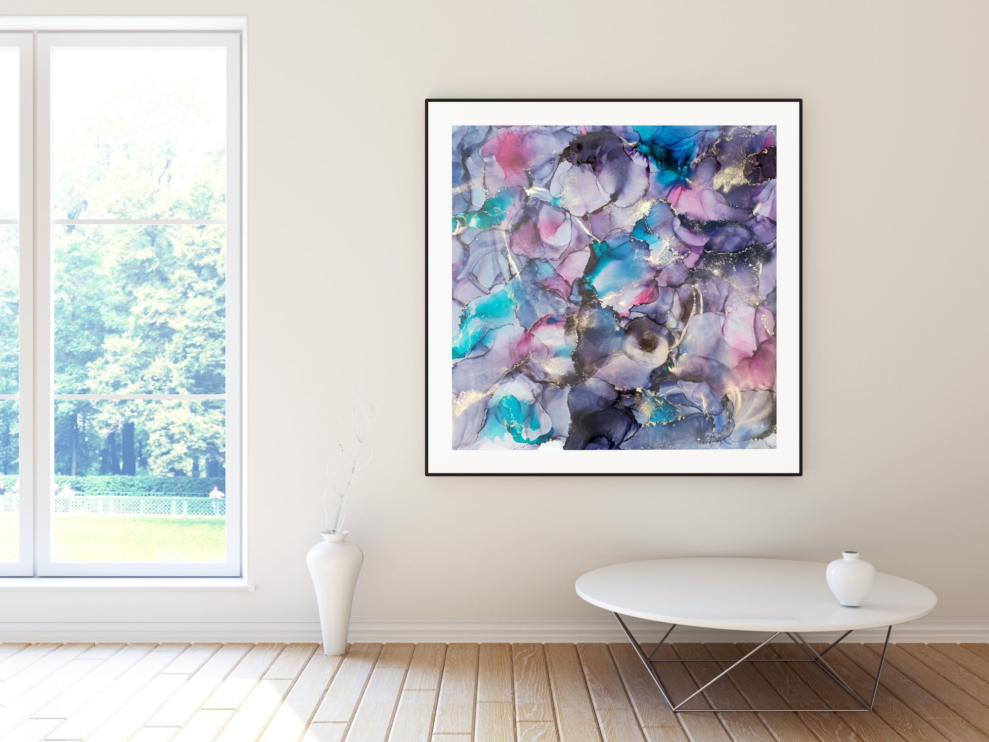 The medium used is alcohol dye ink on heavyweight Yupo synthetic paper. This original artwork is unframed 95 x 95cm in size. Sealed with UV protective varnish ready for framing.