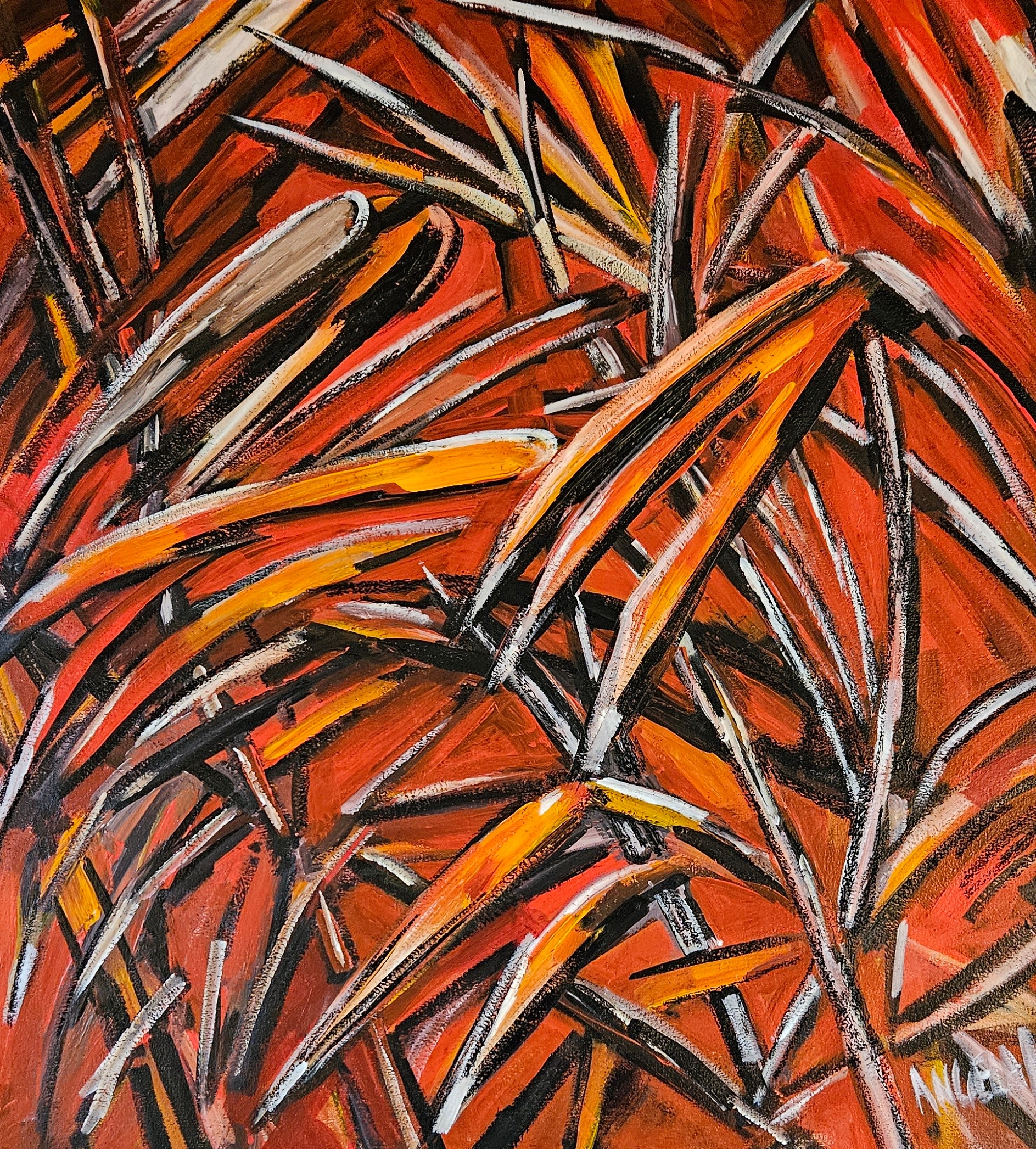 Kangaroo grasses by Angela Mulligan – Kangaroo grasses modern abstract australian outback grasses on our desert sands – signed with certificate of authenticity.