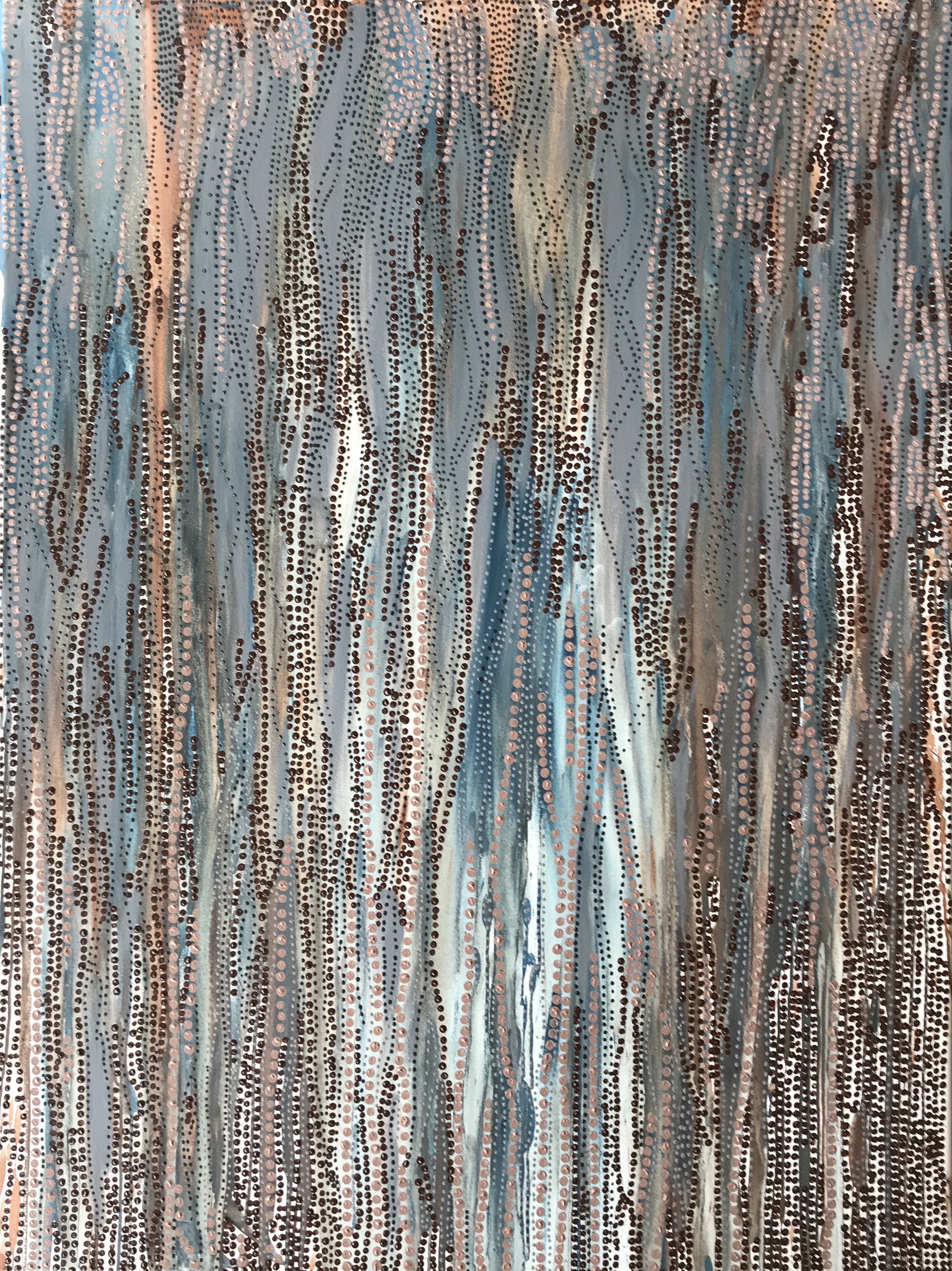 The Raining Series of works are as viewed from my place in bed, whilst pondering motherhood, womanhood and its like to be a woman. Many mothers feel a stronger connection to country and culture after the birth of a child, and for me this is absolutely the case.