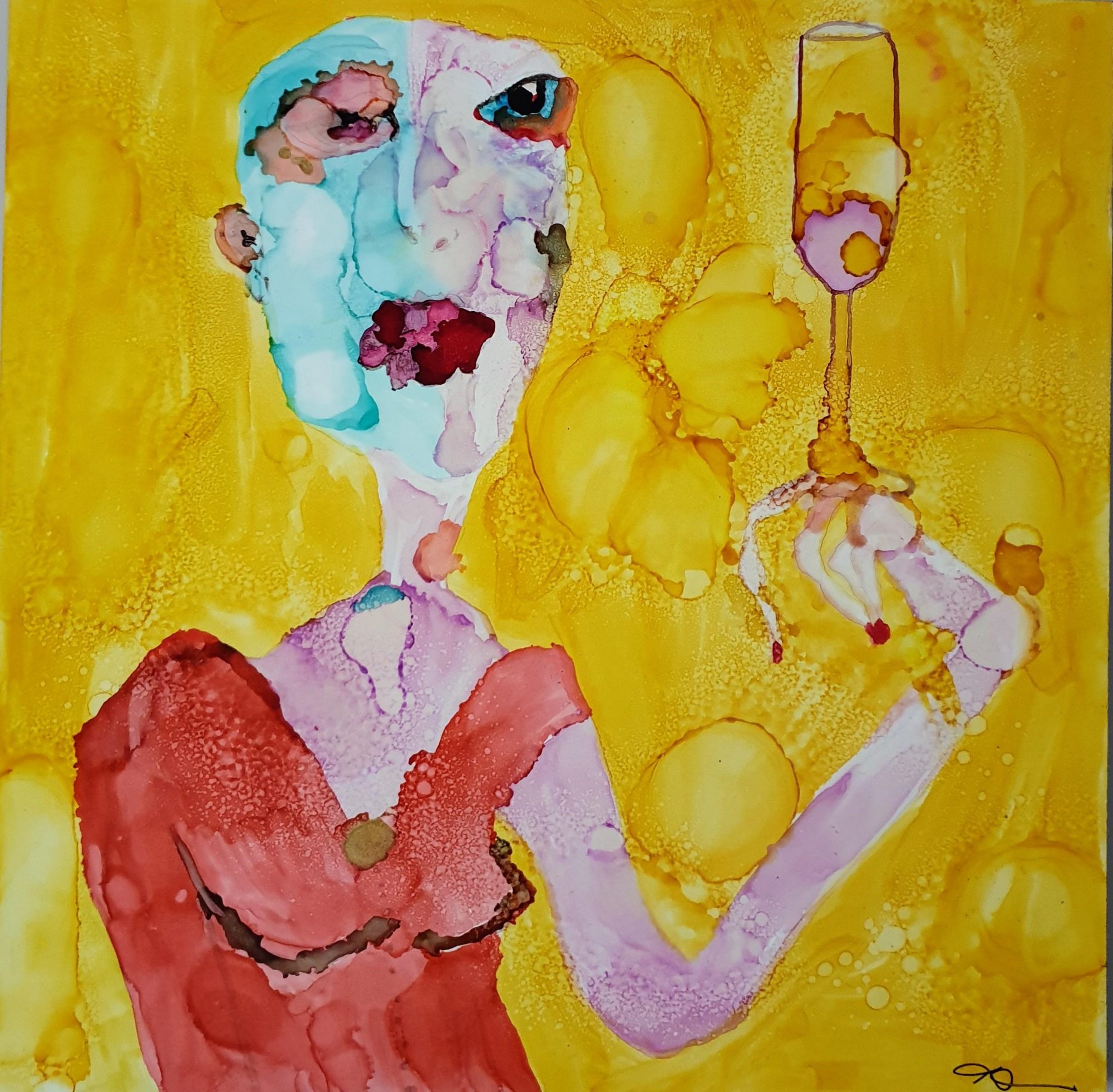 I love wine, I like it a lot…thus I paint it when I can with my dysmorphic ladies
