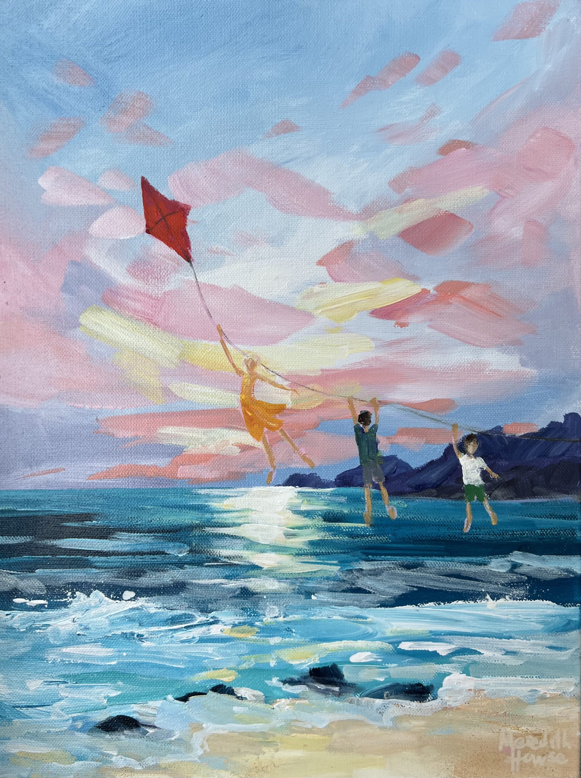 Painted with texture and movement, Howse brings these kite flying scenes to life. Inspired by the adventures and freedom of youth.