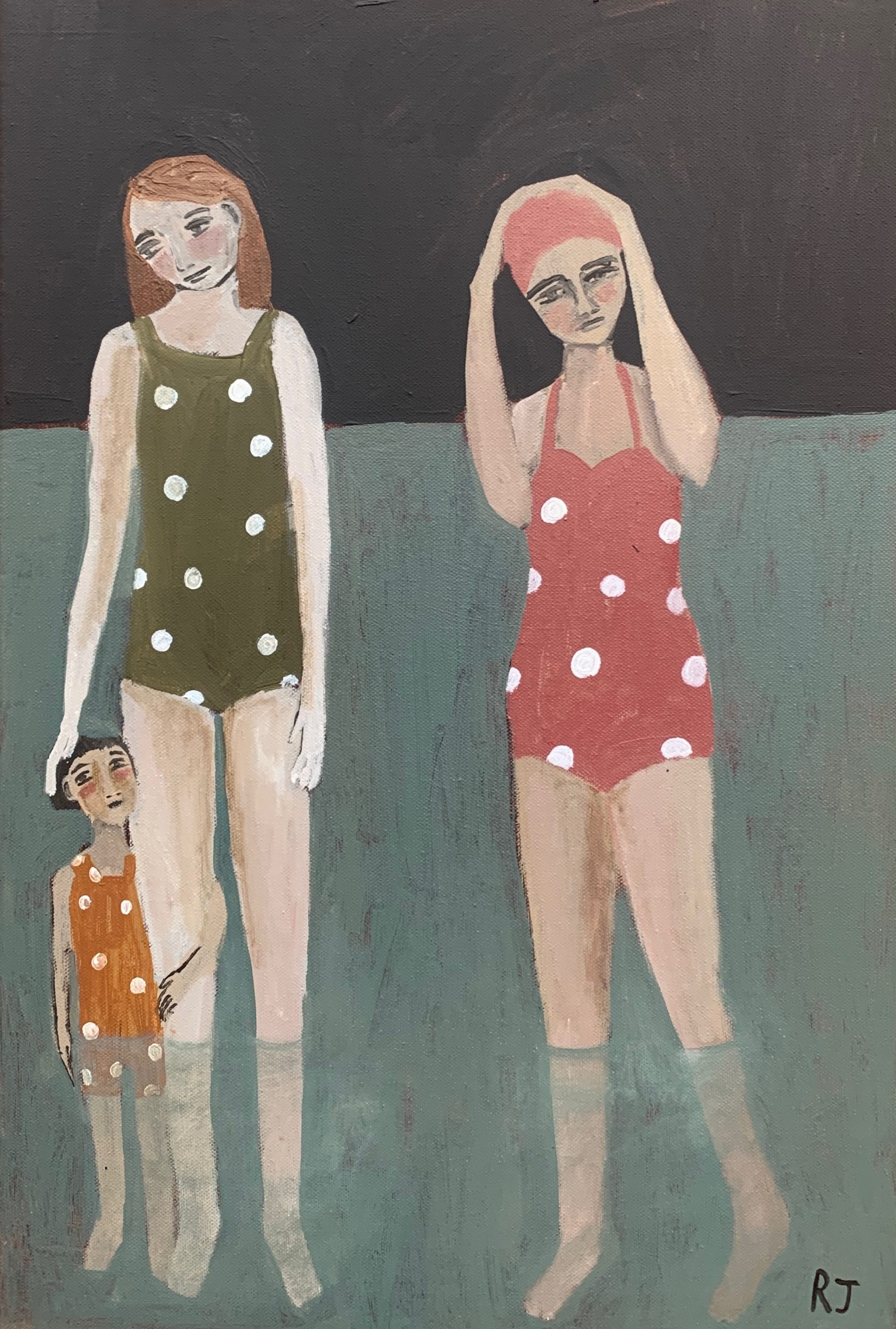 I hope that my art captures something true about the world — the beauty of the ordinary, the complexity of human interaction, the intensity of an emotion. My art is largely figurative and I attempt to represent what I see and experience with a sense of appreciation and humour. My work is colourful and eye-catching and can tend towards the naive, sometimes incorporating elements of fantasy. I like my art to tell a story, to prompt the viewer to think ‘I know exactly how that feels,’ or to inspire a sense of joy, longing or nostalgia.