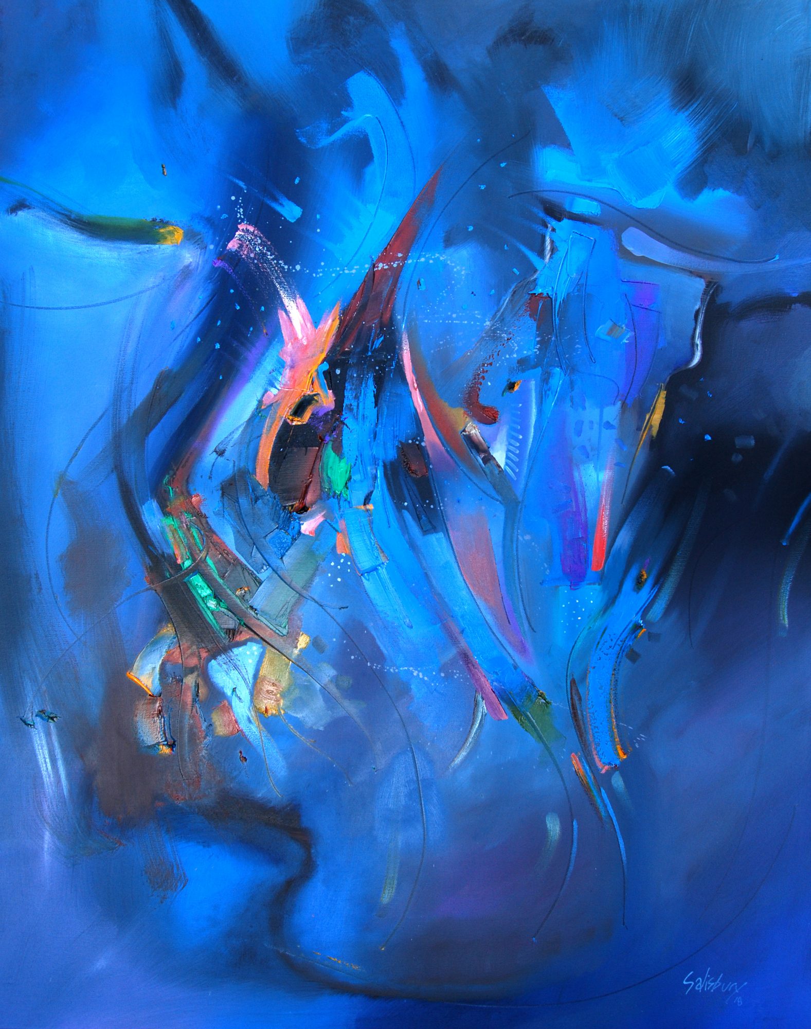 “Knowledge” is a work that celebrates how great life is. The pursuit of knowledge and understanding is vital. This large abstract is deep, dynamic and would add a positive presence to any large wall area.