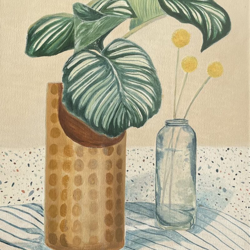 They were painted using watercolour paint on watercolour paper and the painting is framed with a 32cm x 42cm modern white frame