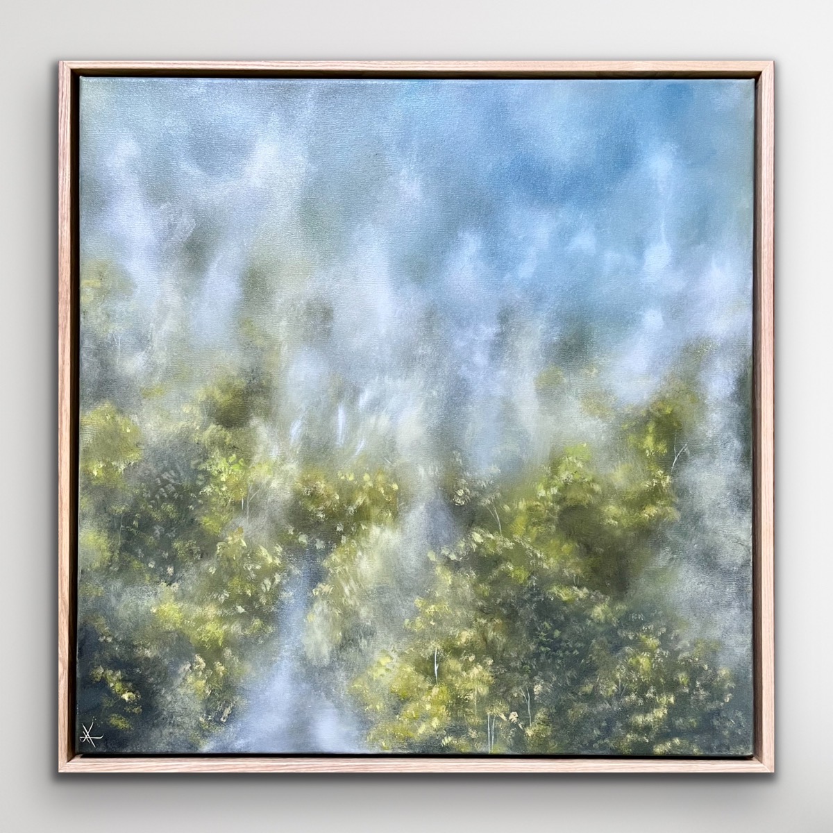 Ready to hang, original oil painting on stretched canvas with American Ash floating frame.