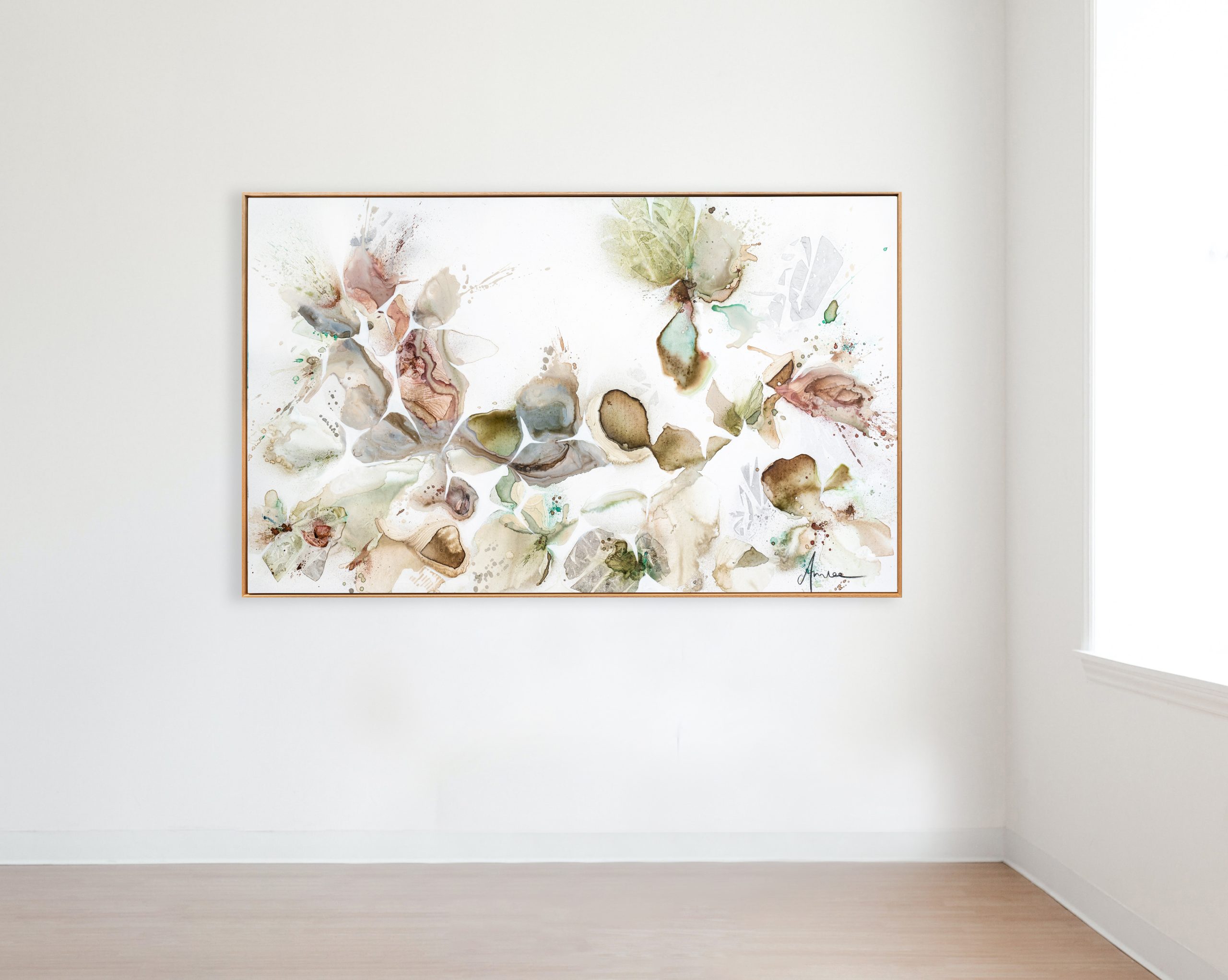 Though all my pieces are purely abstract, upon viewing we intuitively recognise a visual language that mimics the currents of the ocean, natural formations of the earth, a flower in new bloom or the patterns of precious stone. They activate the senses, allowing for immersive visual experiences that transport you outdoors, straight into nature’s arms. This striking piece harnesses Japanese aesthetic principles, including Ma.
