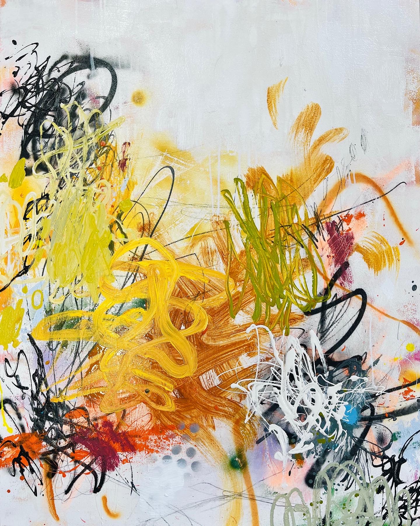 This original painting continues my experimentation with using different techniques to apply the paint. The work was created using Sponges, rags, plastic, scrapers, paint pens, spray packs, and finished off with brushes.