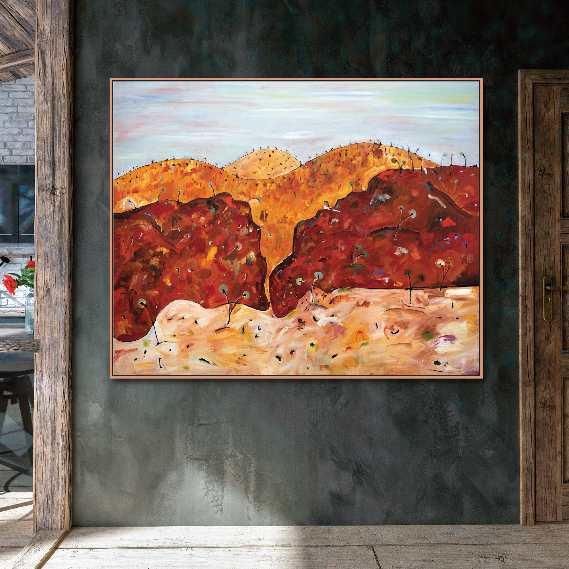 Kwartatuma – Ormiston Gorge 2 by Michael Wolfe – 152x122cm framed in a thin line Mountain Ash frame in a natural Danish Oil finish.