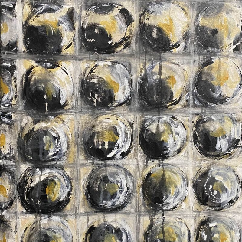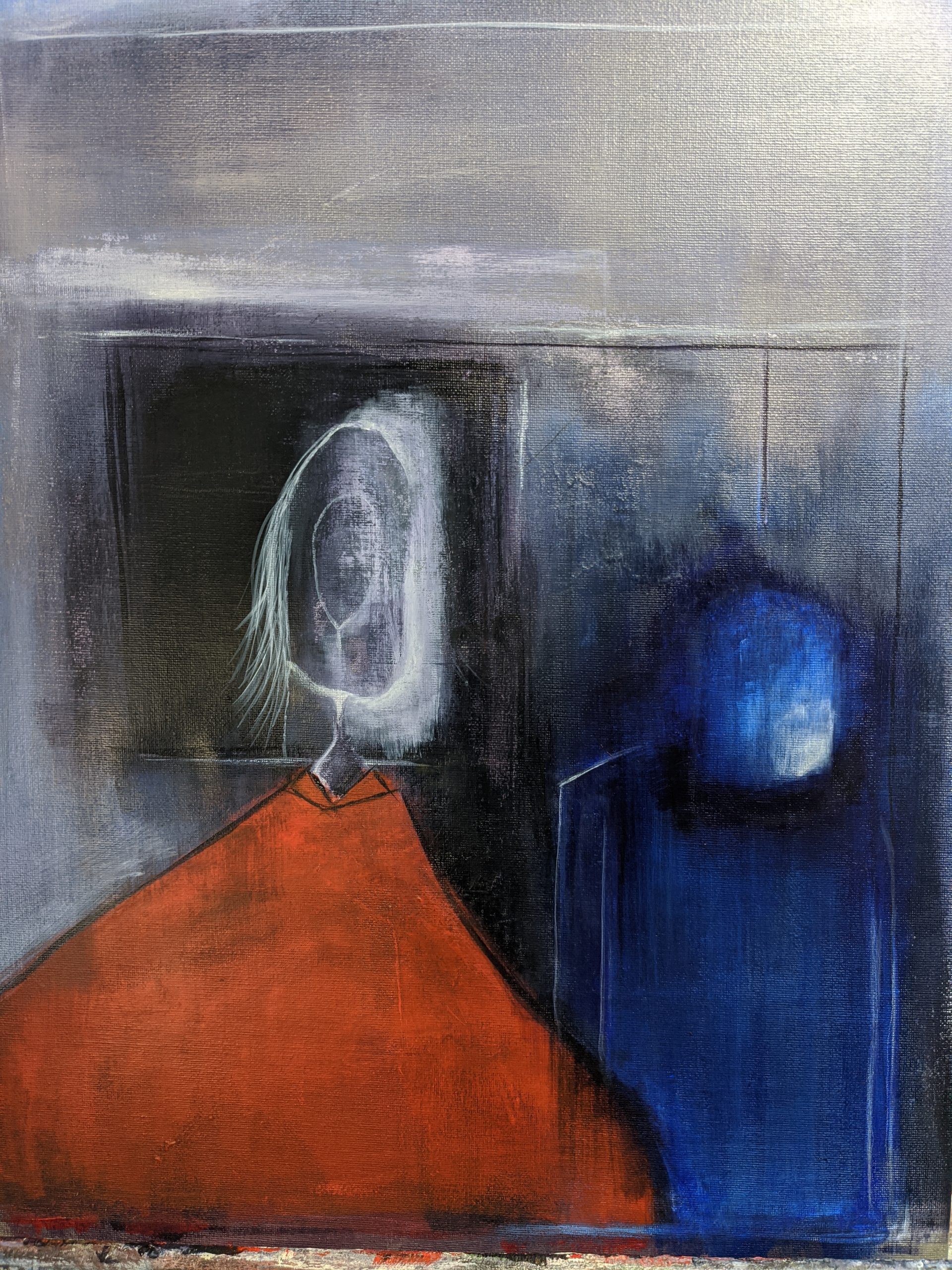 This painting was influenced by the TV series we were watching at the time, where the husband became vulnerable due to addictions and the female had to take the lead role in the family.