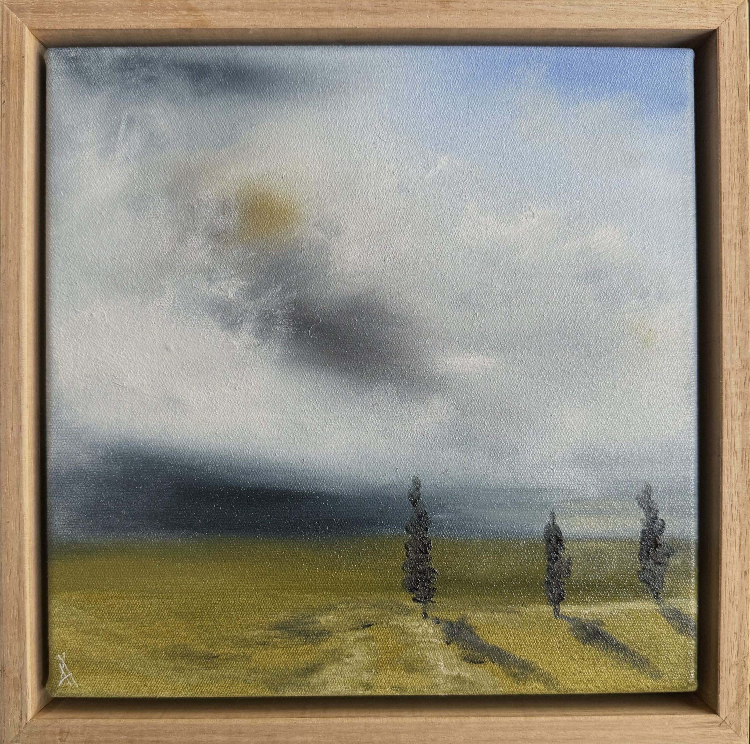 Ready to hang, original oil painting on stretched canvas with Oak floating frame.