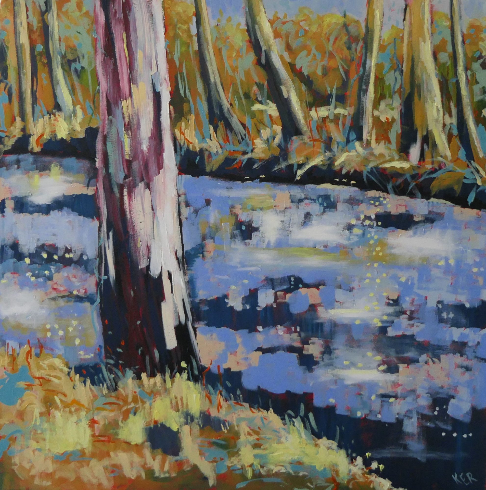 The inspiration for this painting came from the many times I have spent along the Lachlan River in Forbes. I love painting the environment, particularly the central west of NSW where I live. And I especially love painting water, which is such a precious commodity in Australia. I have endeavoured to capture movement and flow in this painting.