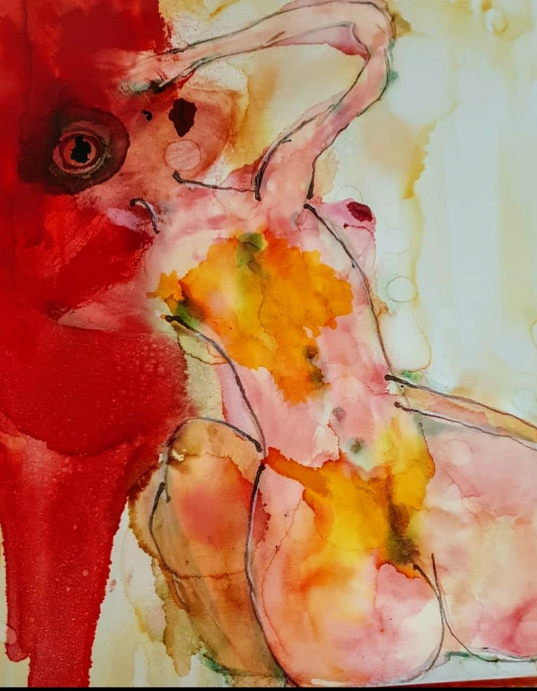 Lady Orchid – Karen Chappelow –  Original acrylic ink on stretched canvas, ready to hang 50x60cm