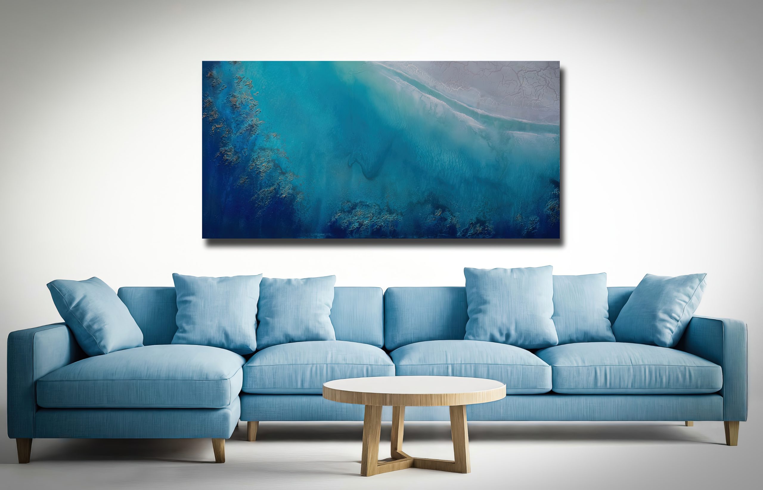 Perfect for collectors of large original paintings, Lagoon Bliss is a striking statement piece that transforms any space with the serene and powerful energy of the ocean.