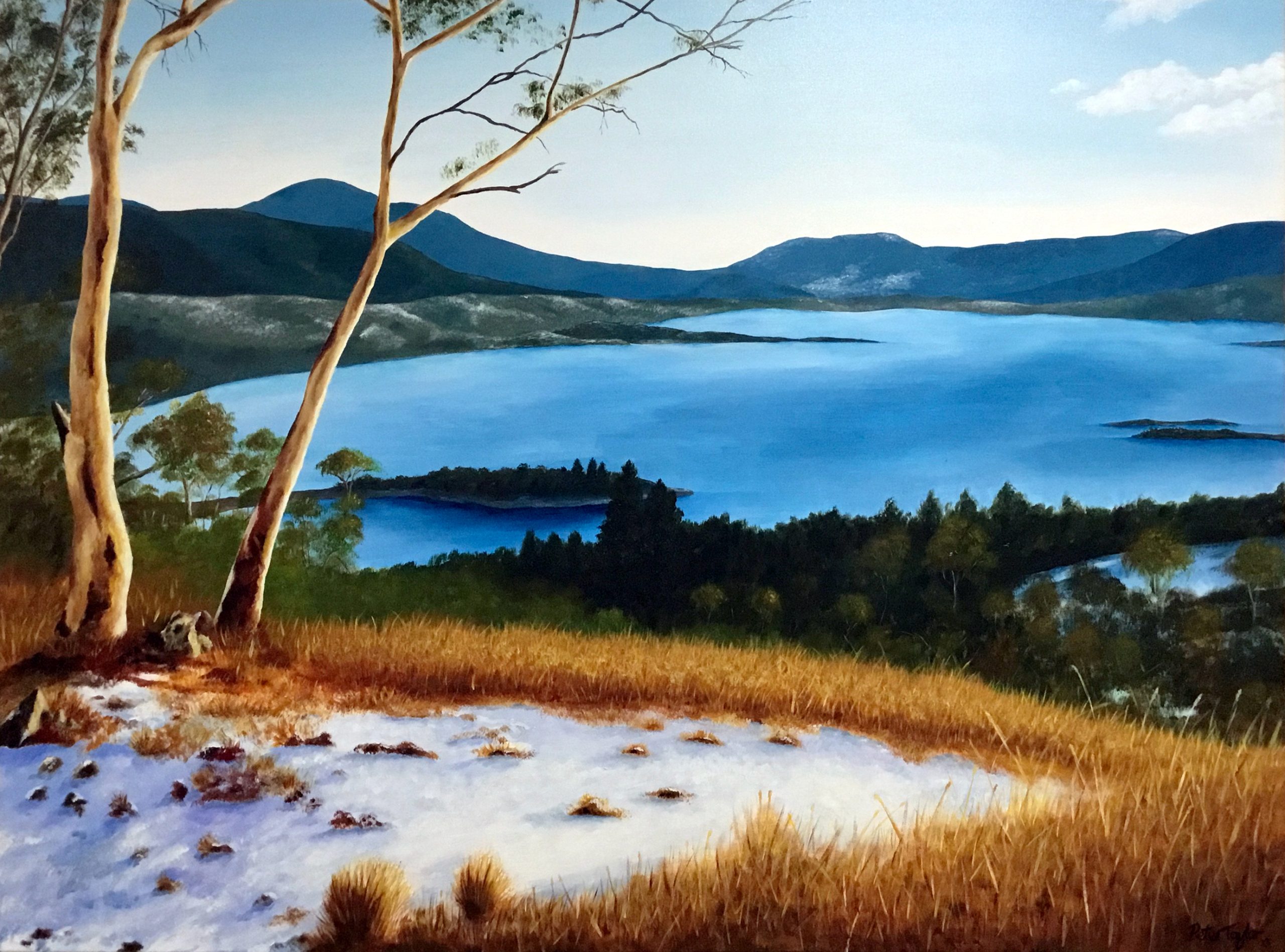 Mountain Design Series – Lake Jindabyne, NSW Snowy Mountains by Peter Taylor – Mountain Landscape inspired by the Snowy Mountains of Australia.