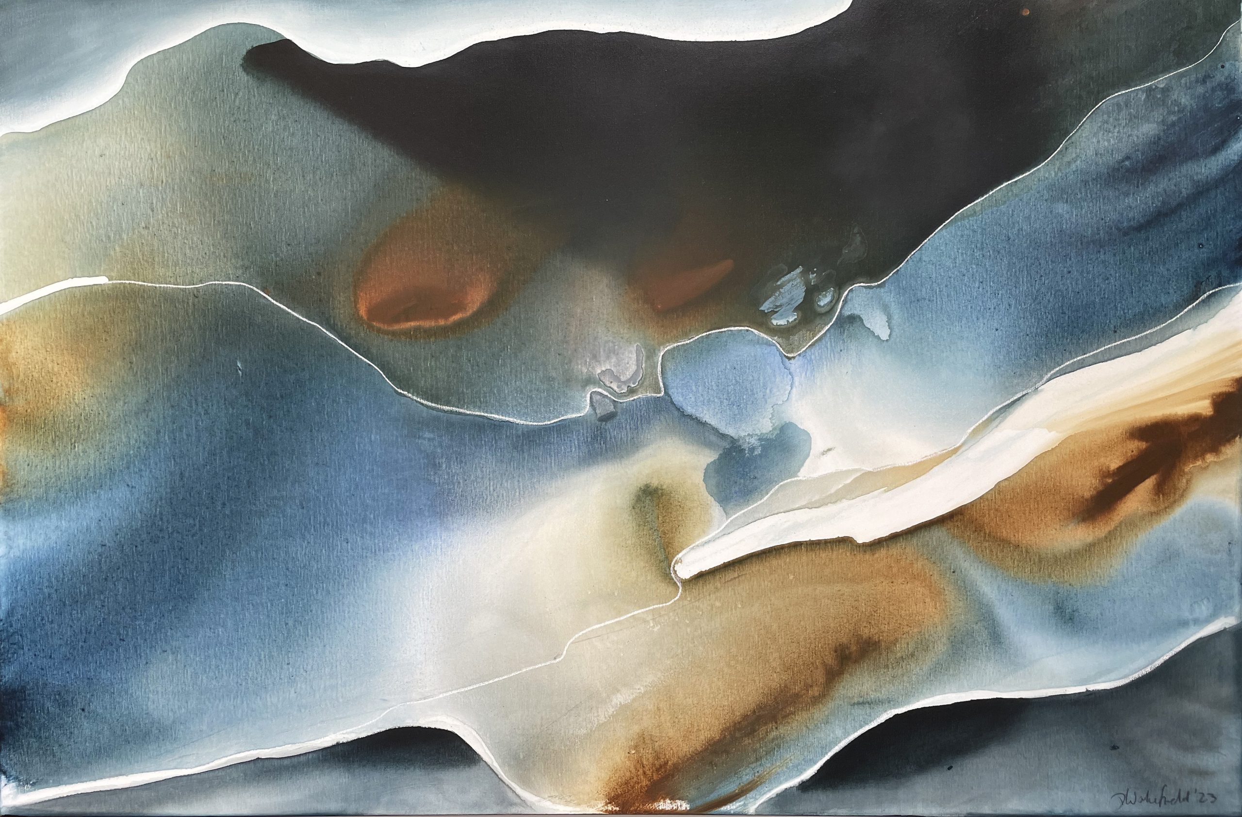 Lake Tekapo 1 by Dinah Wakefield is inspired by the light, the colours and the natural beauty of the Noosa region of Australia. “What I love most about Noosa is the interplay of light. From the oceans to the clouds, to the river estuaries and the hinterland, this canvas unfolds before me every day and finds expression in my paintings”.