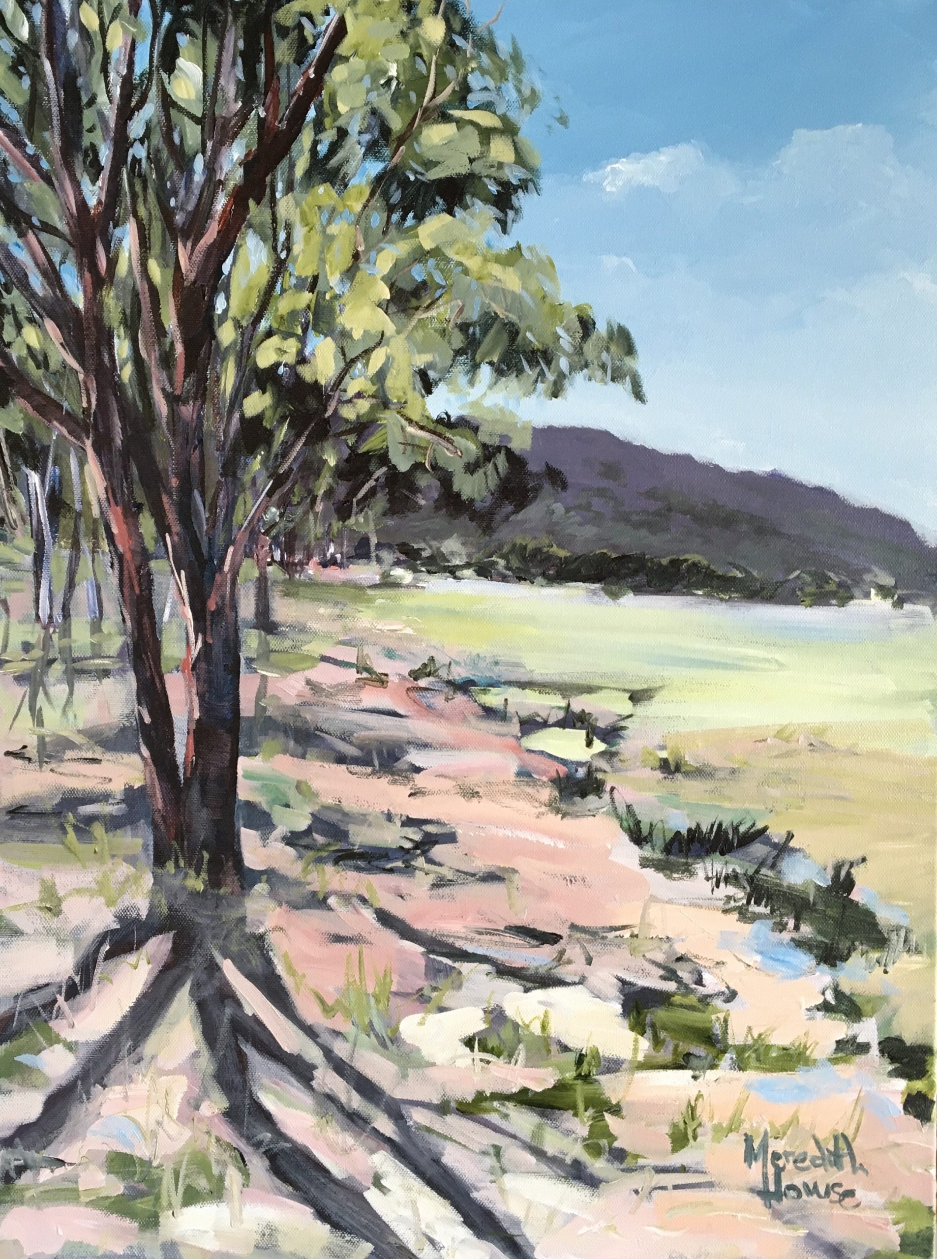 Note for Collectors: This artwork was completed during a painting sojourn to Canberra. You will notice the colour palette is very similar to the other Canberra pieces, Garden at Arboretum, Garden Arch at Arboretum, Canberra Eucalyptus, Rolling Hills of Home, Trail up Painters Hill and Sail Away.